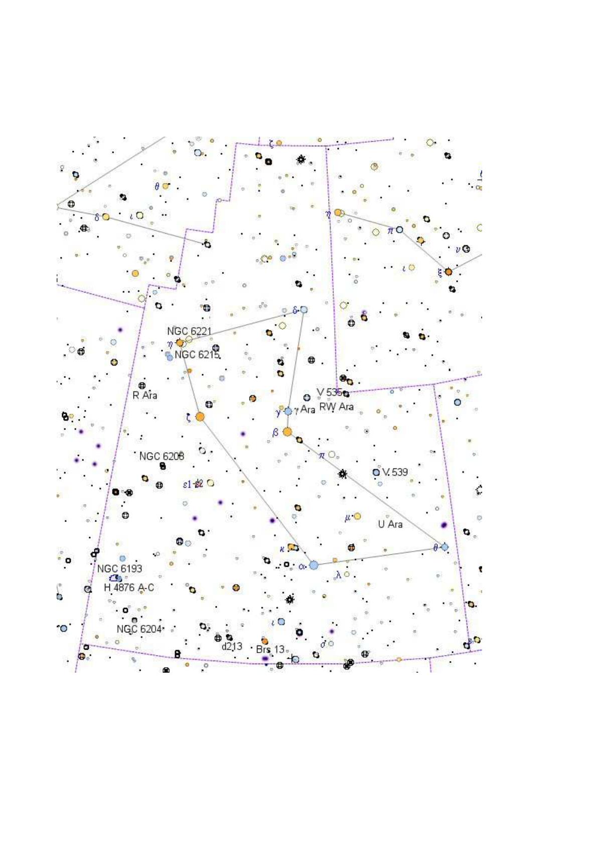 Les deux plus lumineuses sont R Ara et V 539 Ara.
