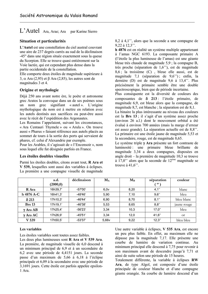 Parmi les étoiles doubles, citons avant tout, R Ara et