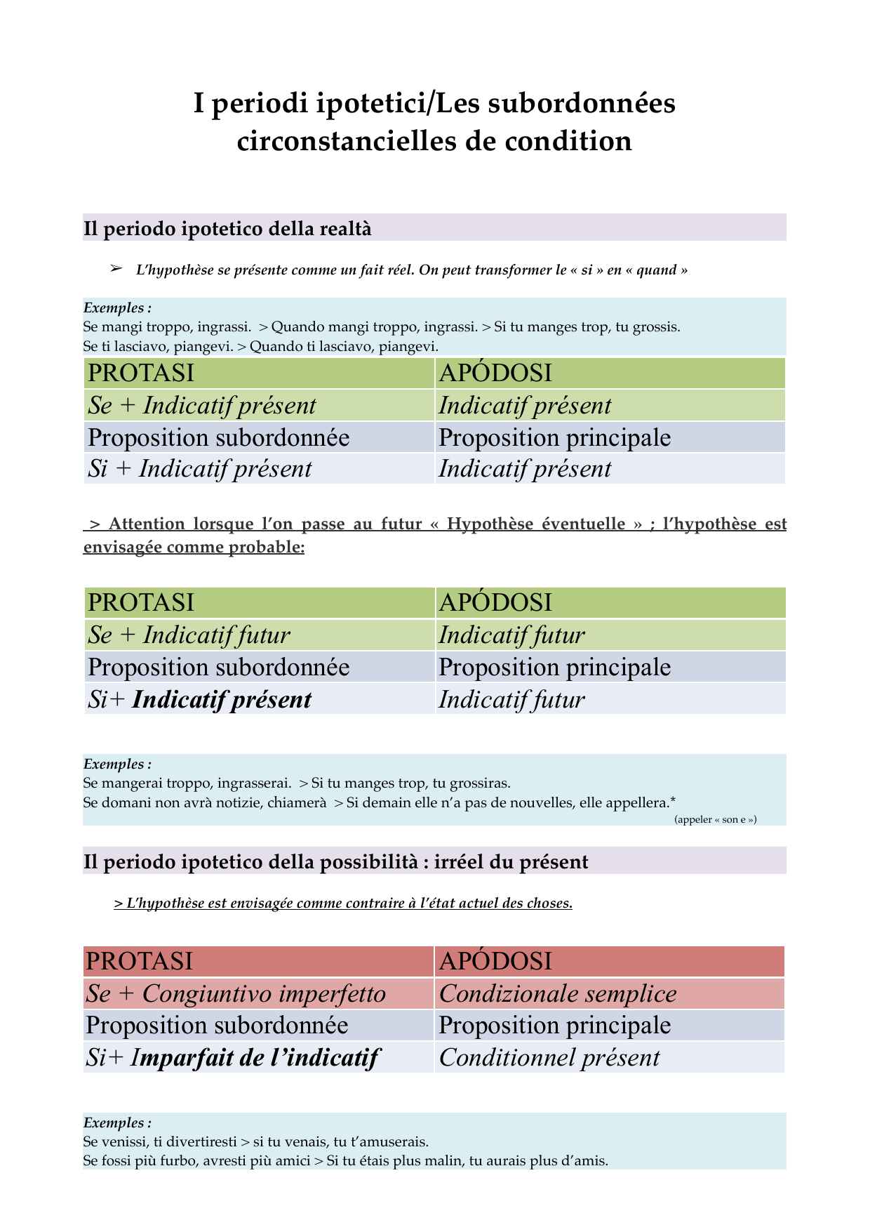 I periodi ipotetici/Les subordonnées