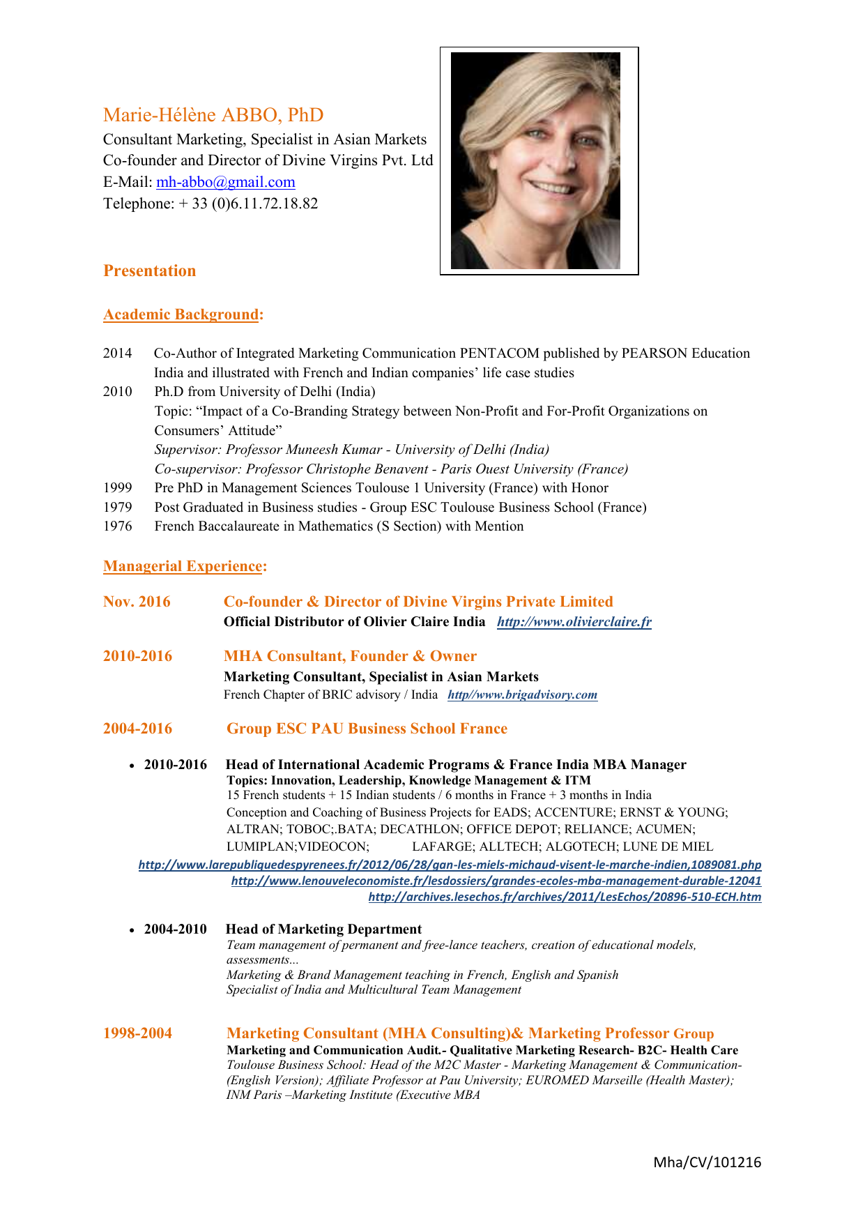 2010-2016 Head of International Academic Programs & France India MBA Manager