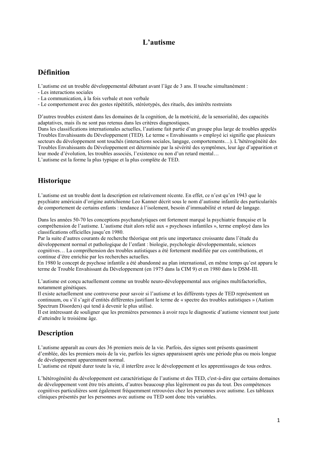 diagnostic d’autisme. Les examens complémentaires très importants à réaliser ont pour but de rechercher les