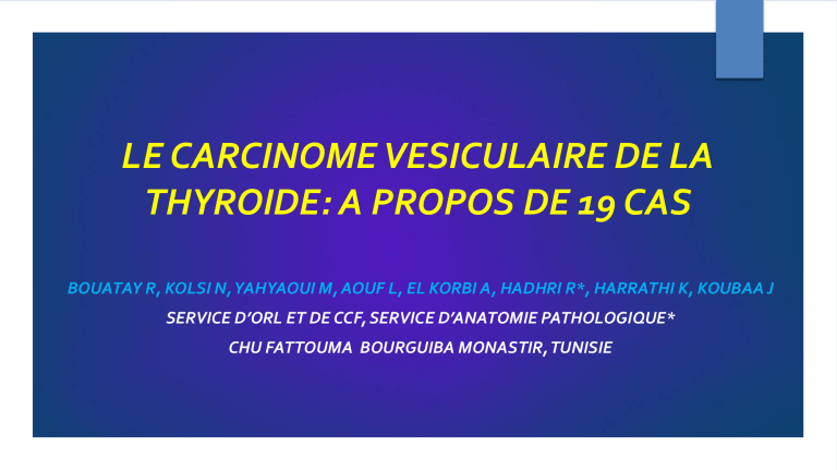 SERVICE D’ORL ET DE CCF, SERVICE D’ANATOMIE PATHOLOGIQUE*