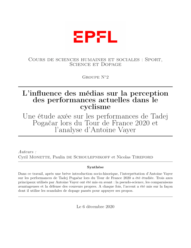 tions de la chimie dans le cyclisme. Effectivement, les normes et les valeurs sportives érigées,