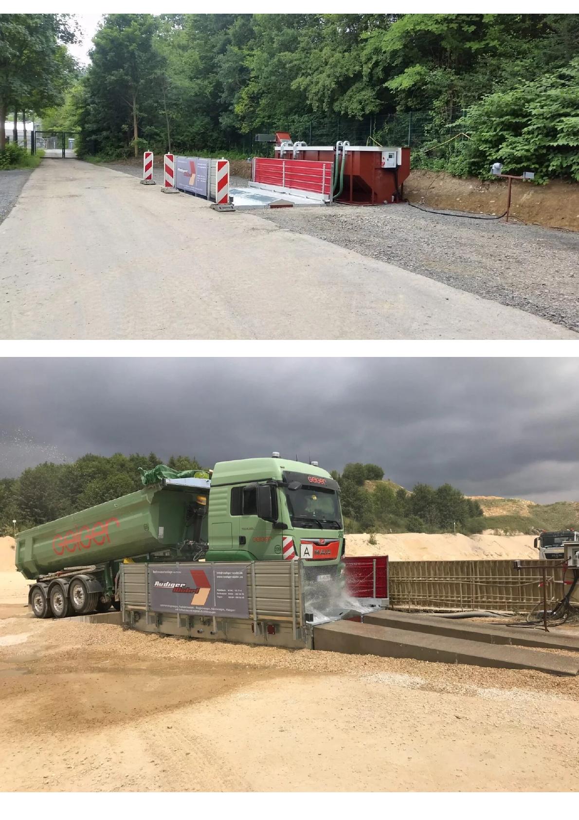 Die Lkw-Reifenwaschanlagen 2RU-Stone von Wöhrl benötigen kein Betonfundament was enorm Kosten