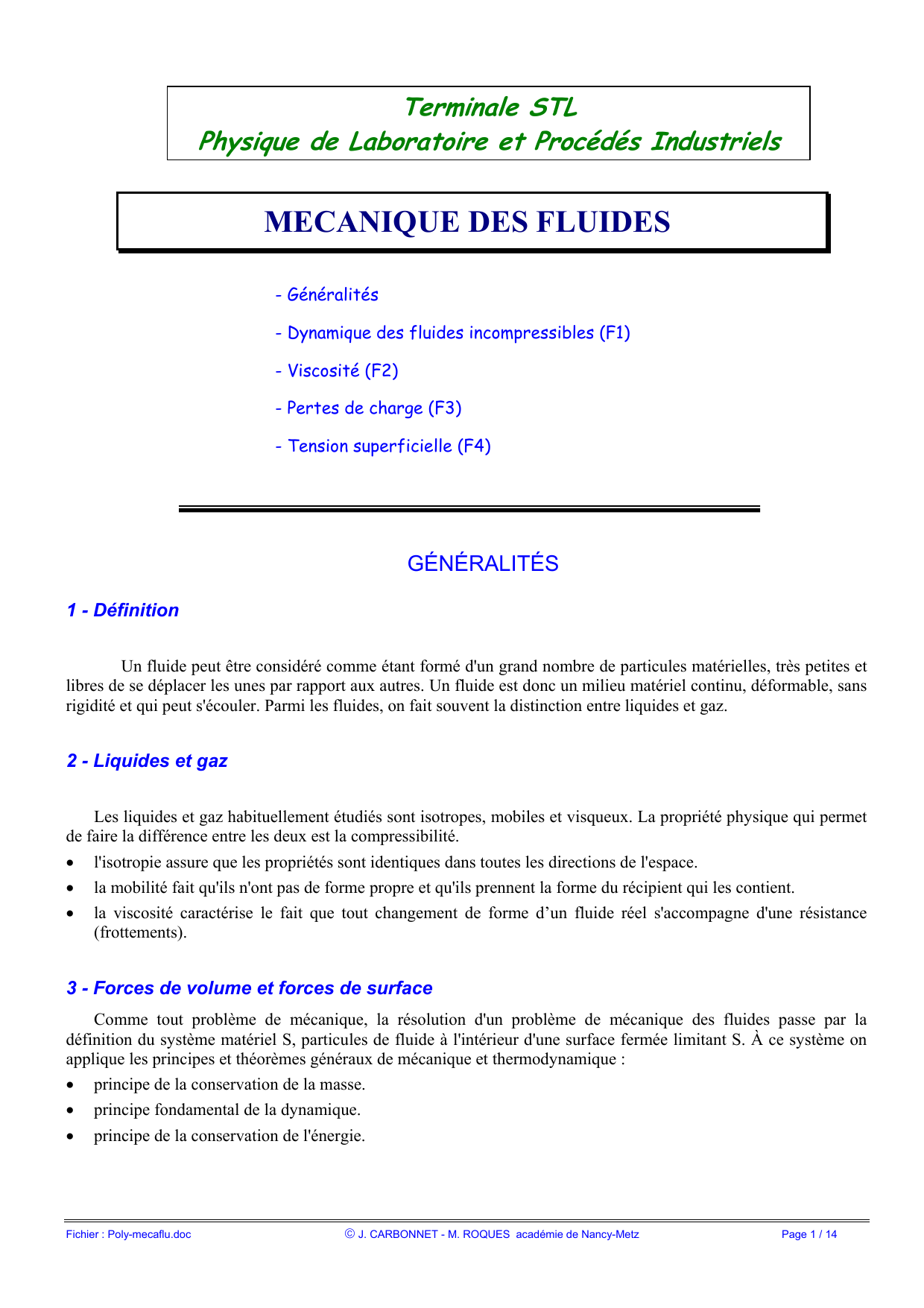 Fichier : Poly-mecaflu.doc © J. CARBONNET - M. ROQUES académie de Nancy-Metz Page 4 / 14
