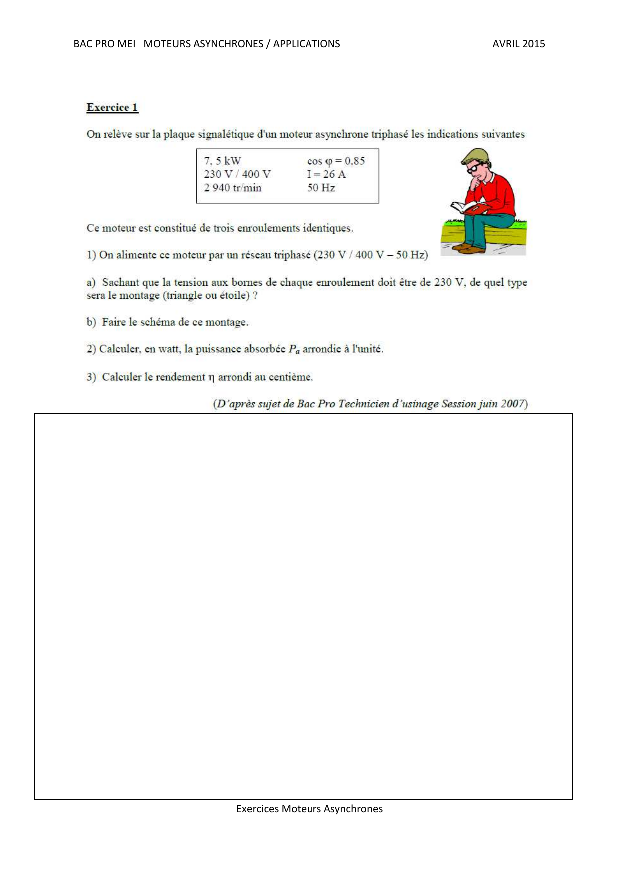 BAC PRO MEI MOTEURS ASYNCHRONES / APPLICATIONS AVRIL 2015