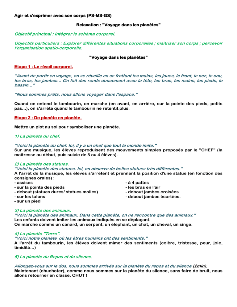 Objectif principal : Intégrer le schéma corporel.