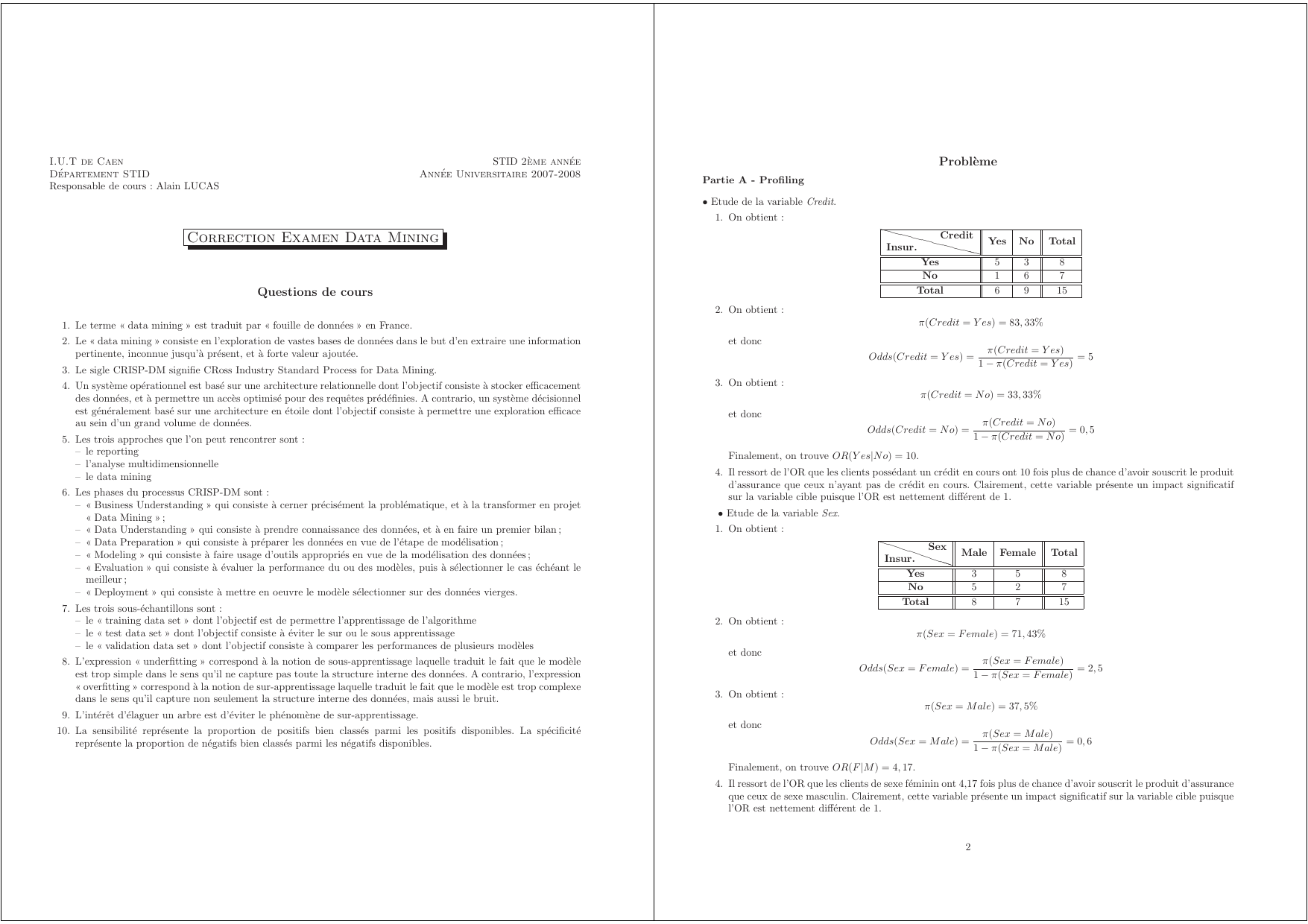 2. Afin d’am´eliorer la vente du produit, il importe de cibler en particulier : les clients ayant un cr´edit, les clients