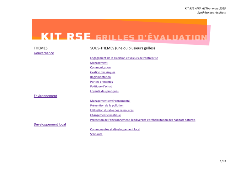 desdites organisations à se comporter de manière responsable vis-à-vis des autres questions centrales.
