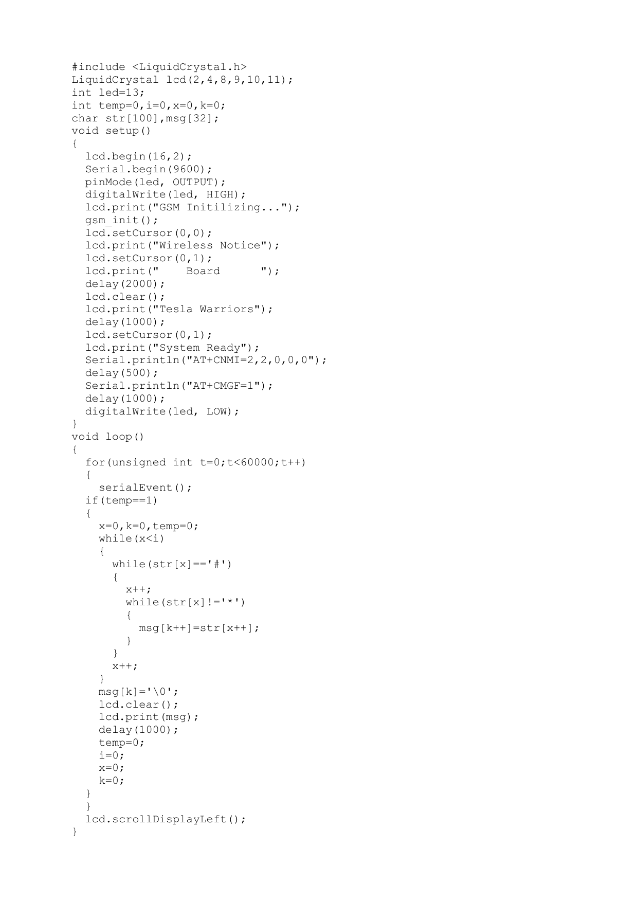 lcd.print("Tesla Warriors");