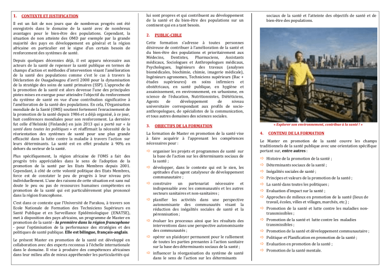 Le présent Master en promotion de la santé est développé en