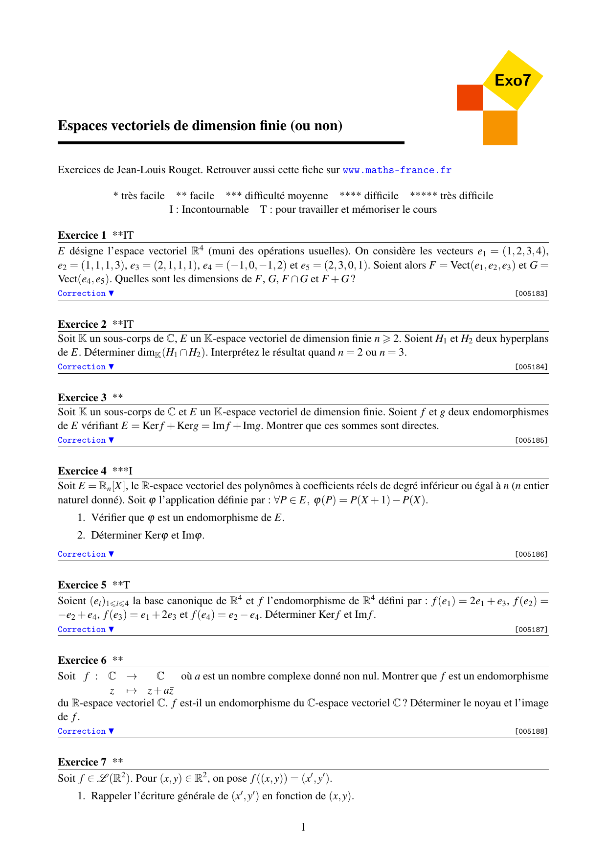 Dans ce cas, Ker f=Vect(ei(α+π)/2). D’après le théorème du rang, Im fest une droite vectorielle et pour