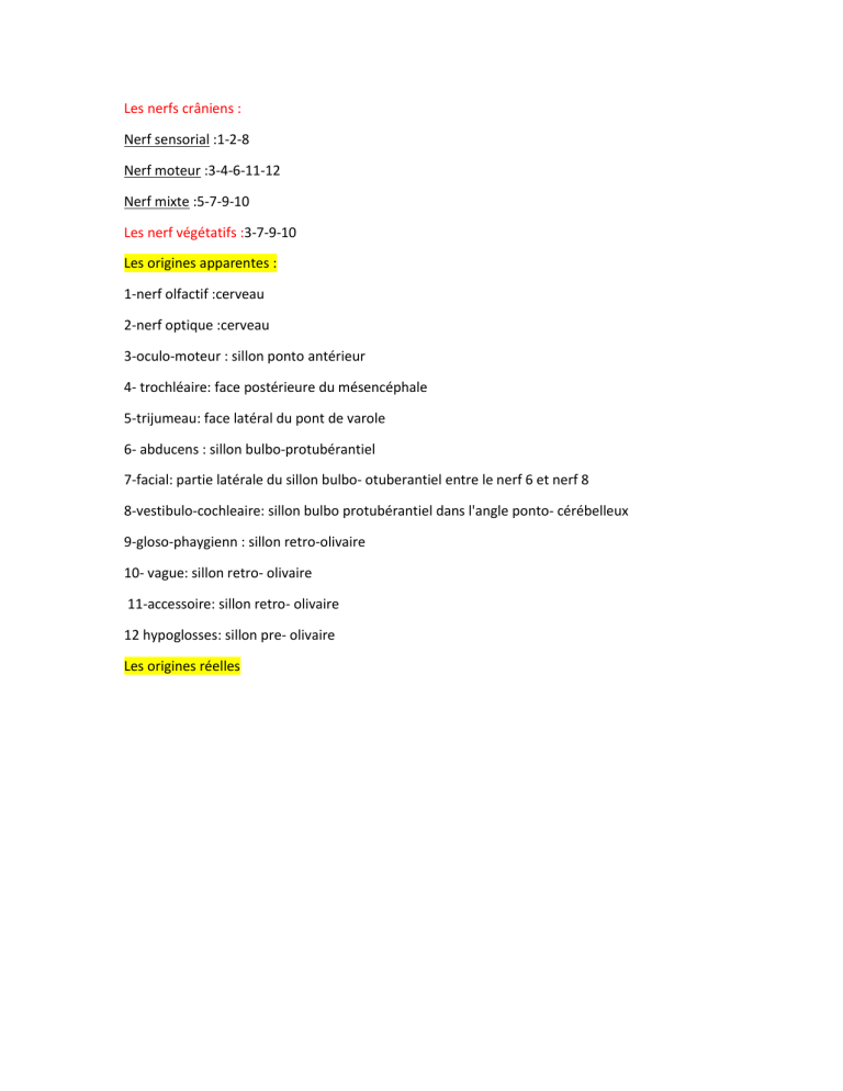 7-facial: partie latérale du sillon bulbo- otuberantiel entre le nerf 6 et nerf 8