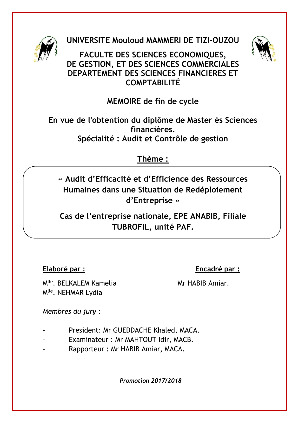 Figure N°14 : Structure organisationnelle de la direction d’audit de l’entreprise