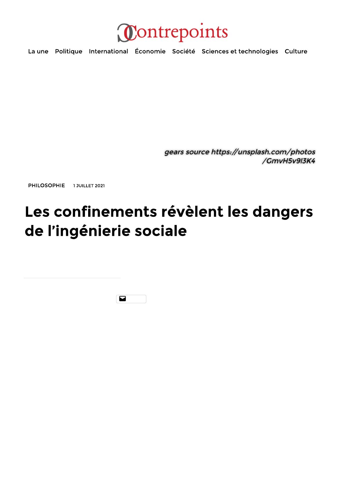 Les confinements révèlent les dangers de l’ingénierie sociale | Contrep... https://www.contrepoints.org/2021/07/01/400693-les-confinements-rev...