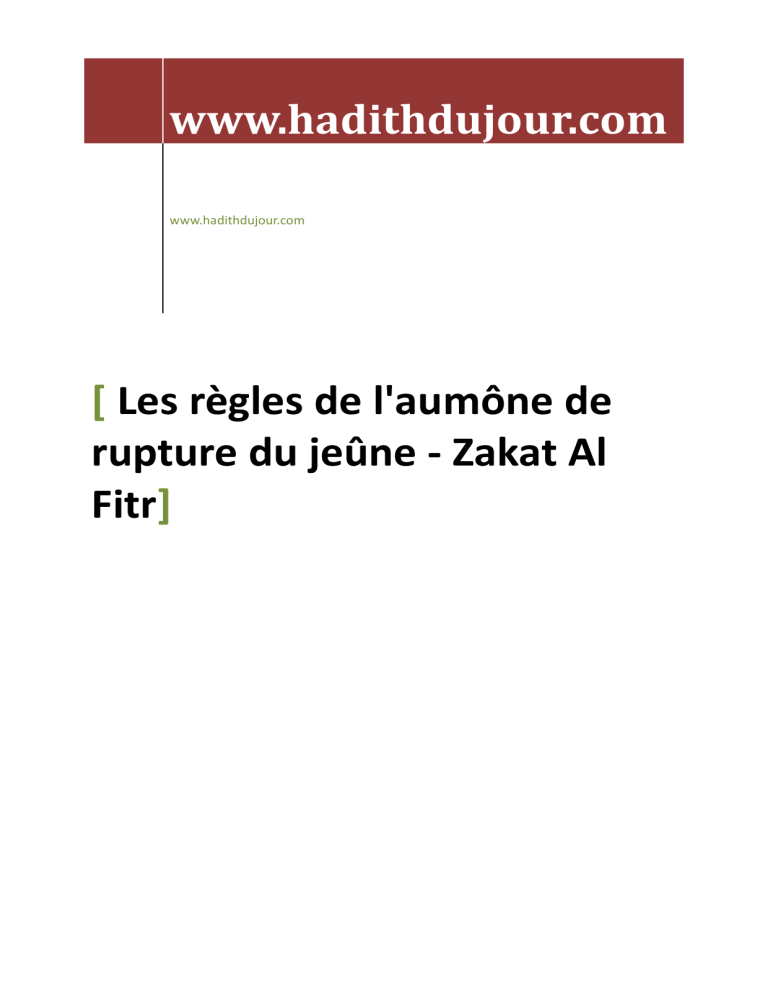 [ LES RÈGLES DE L'AUMÔNE DE RUPTURE DU JEÛNE - ZAKAT AL FITR]