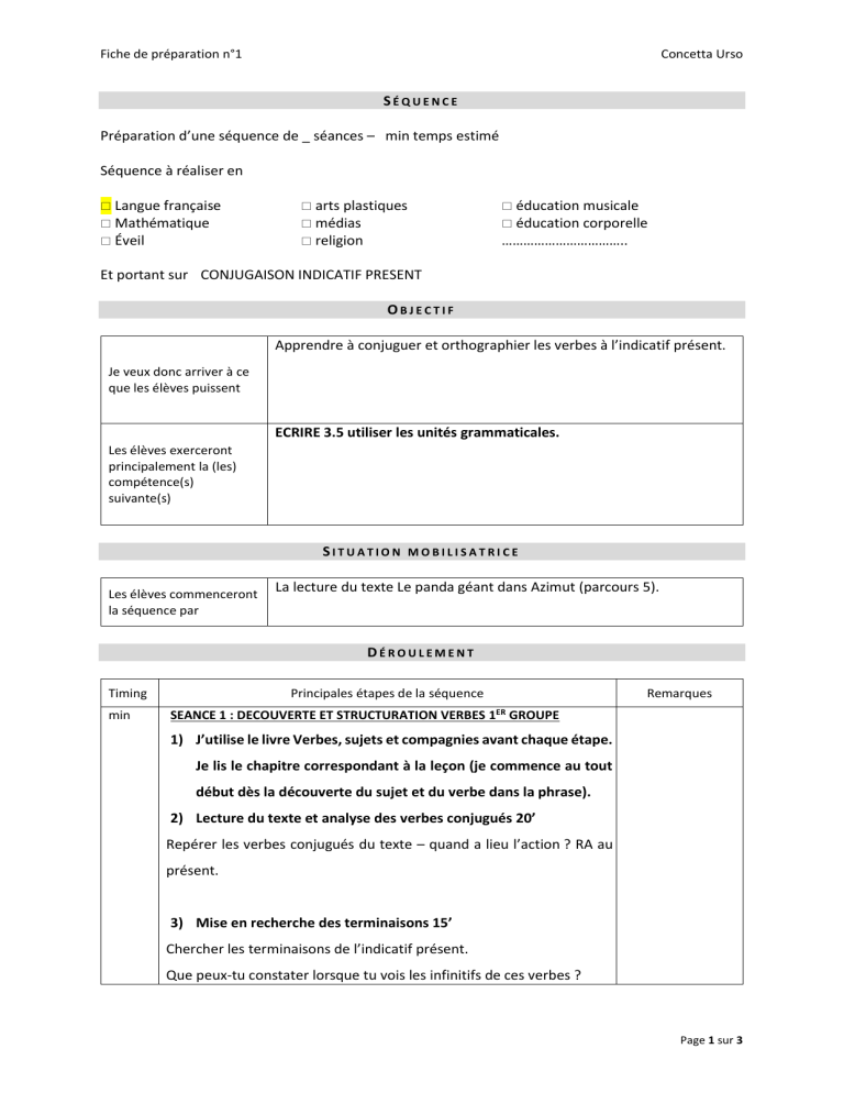 SEANCE 5 : DECOUVERTE ET STRUCTURATION VERBES 2è ET 3è GROUPES