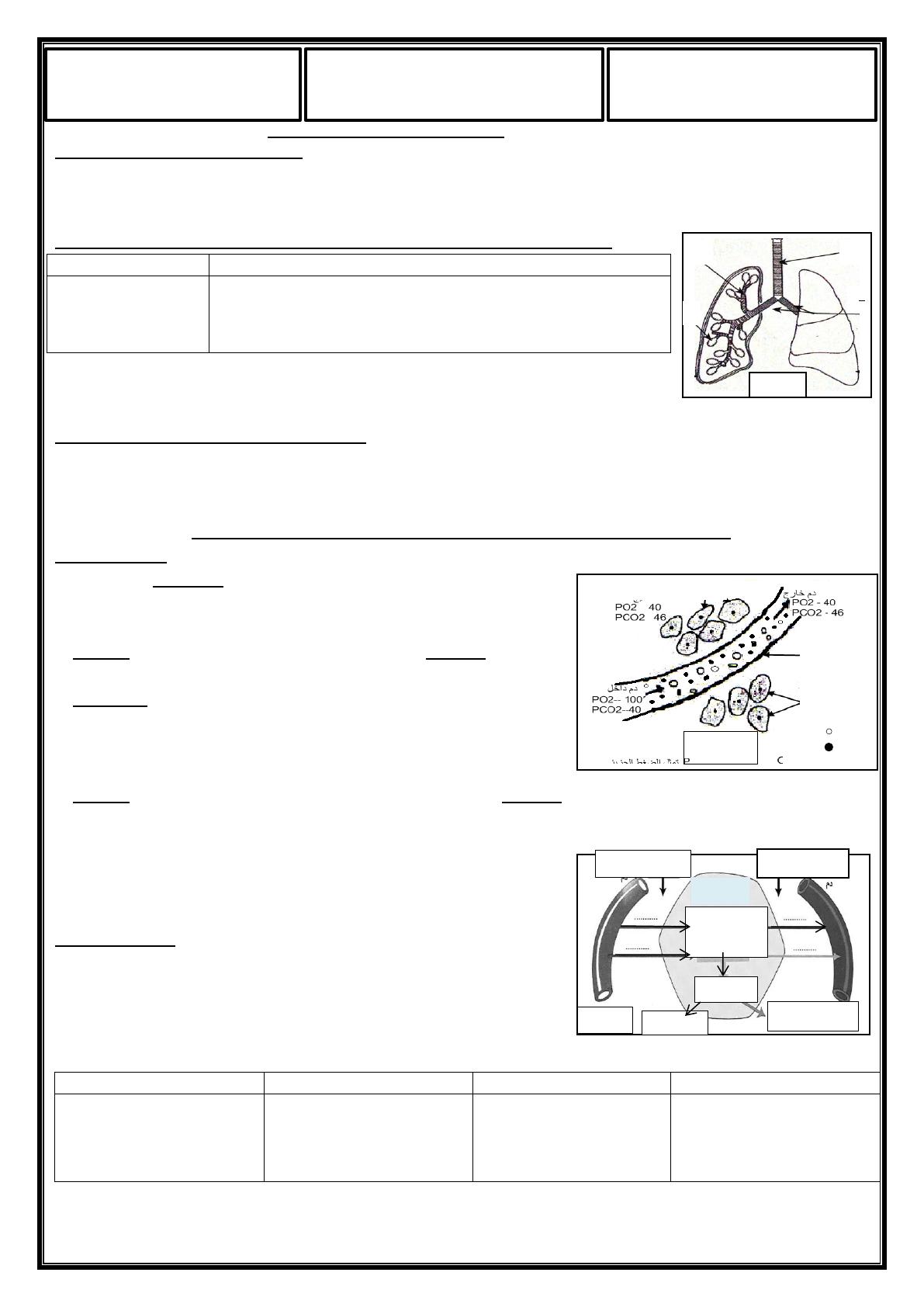 Exercice1 (8pts) : Le Doc 1 représente le mécanisme responsable des échanges gazeux respiratoires au niveau des