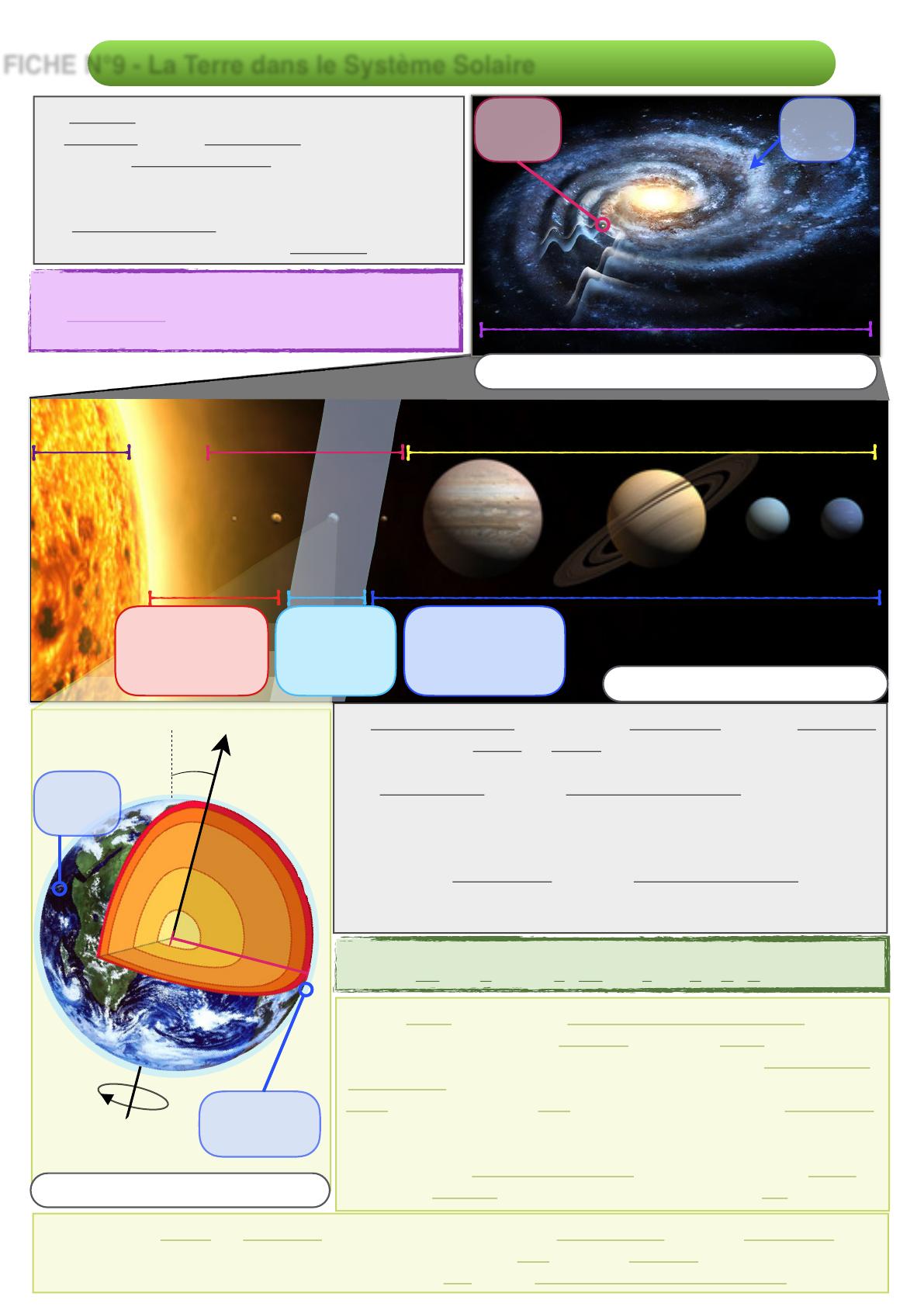 La Terre à un rayon de 6 371 km. Elle fait le tour du Soleil en 365,25 jours, c'est sa révolution. Elle