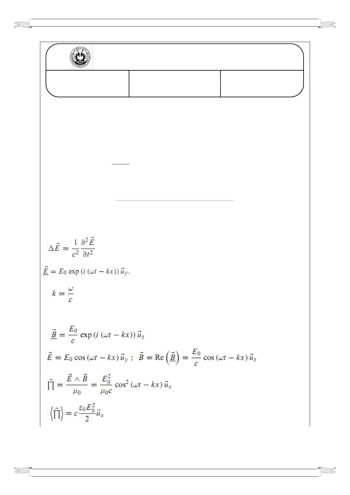 1) Retrouver l’équation de propagation de l’onde dans le vide.