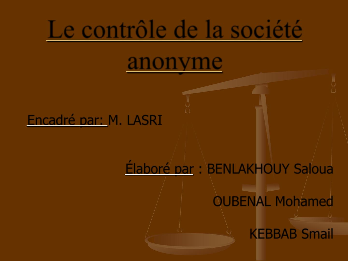 Le contrôle de la société