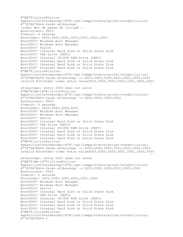 Invalid BootOrder order entry value0003,0000,3000,0001,2001,2002,2003