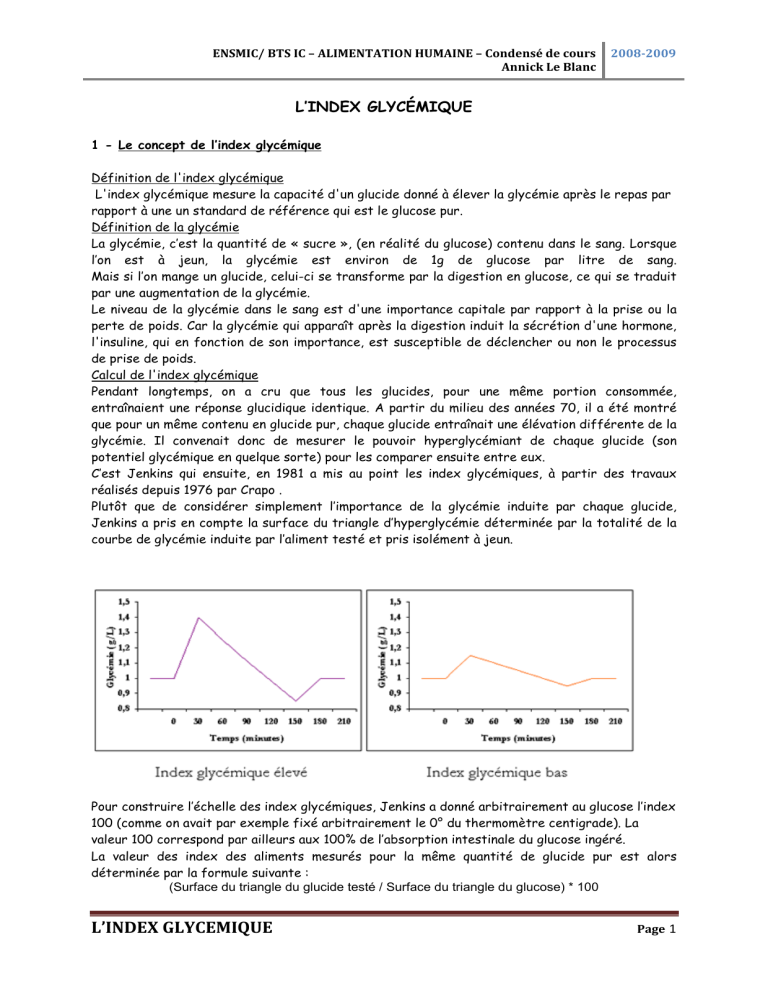 ENSMIC/ BTS IC – ALIMENTATION HUMAINE – Condensé de cours