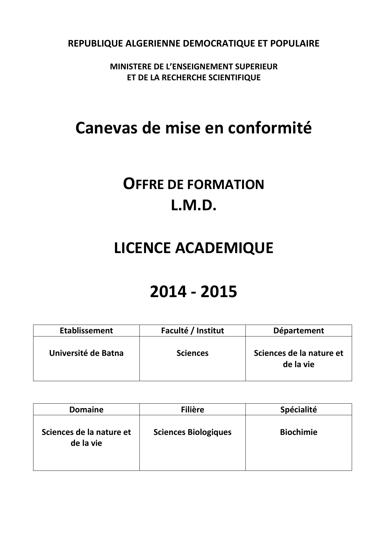 Etablissement : UHL- Batna Intitulé de la licence : Biochimie Page 3