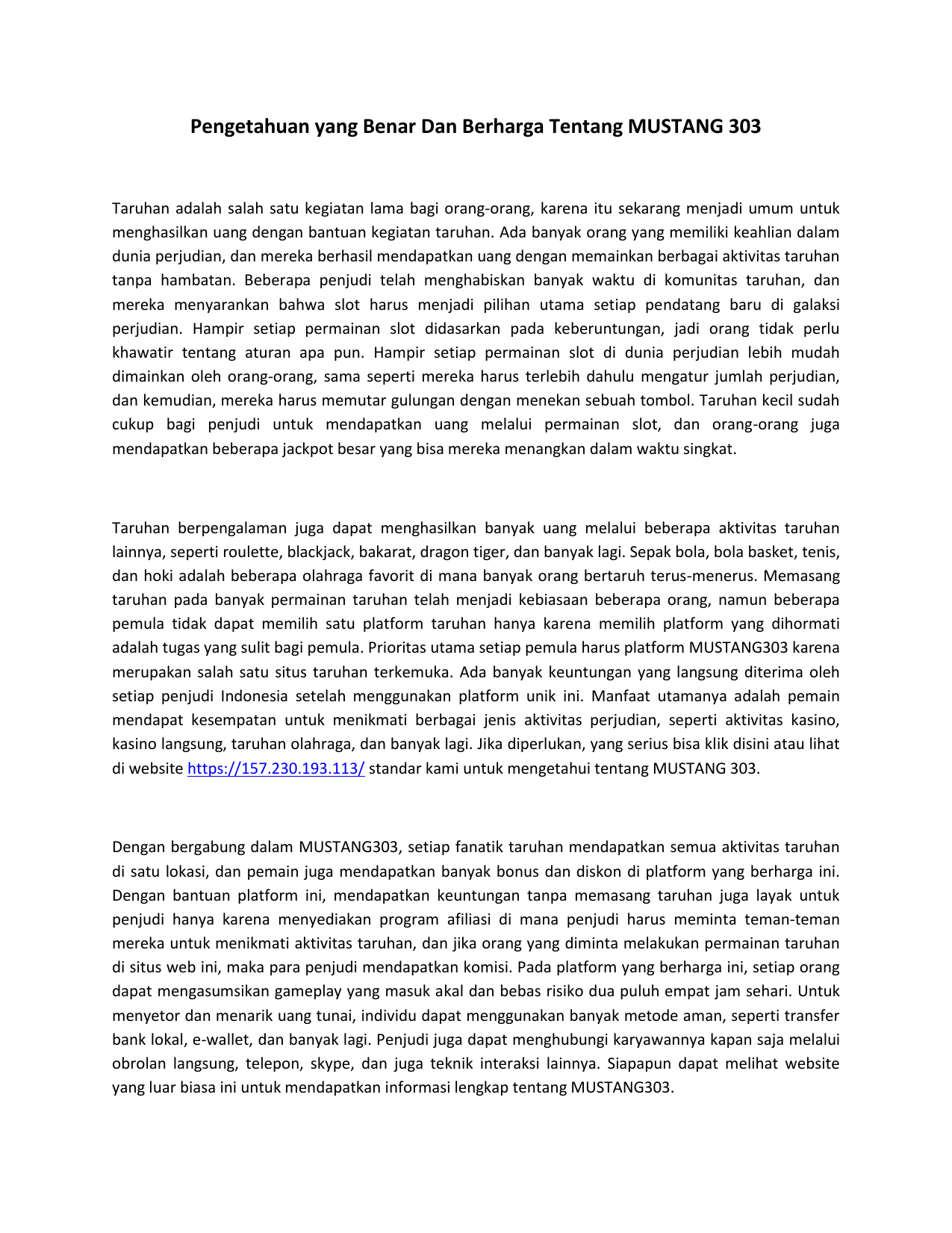 di website https://157.230.193.113/ standar kami untuk mengetahui tentang MUSTANG 303.