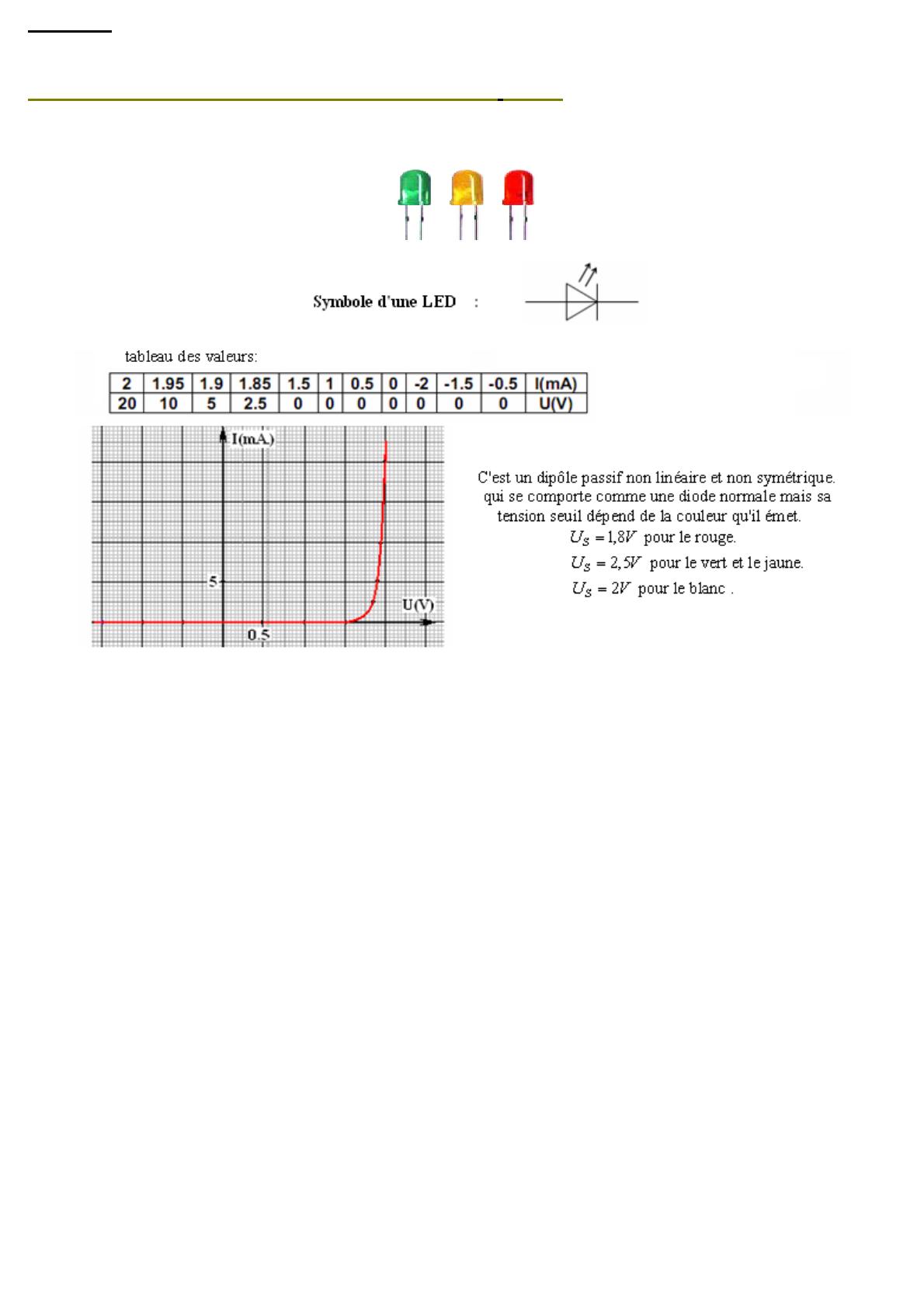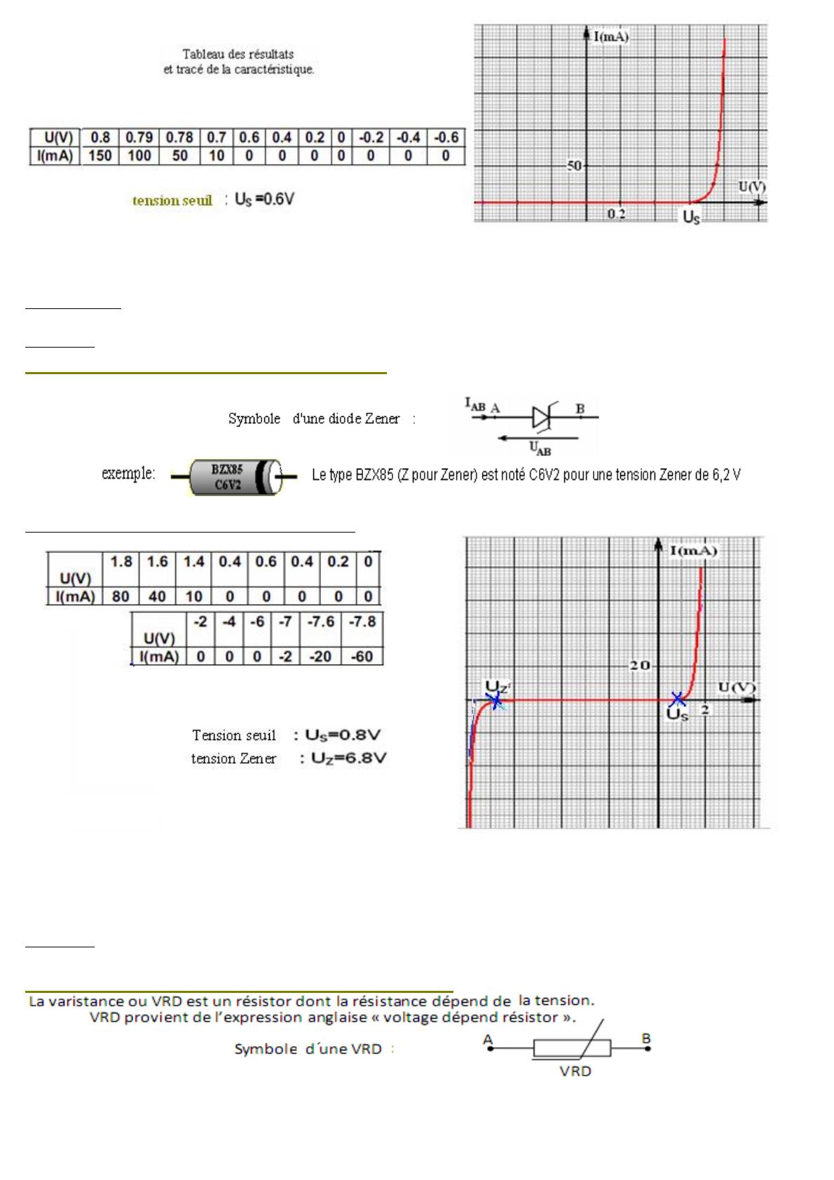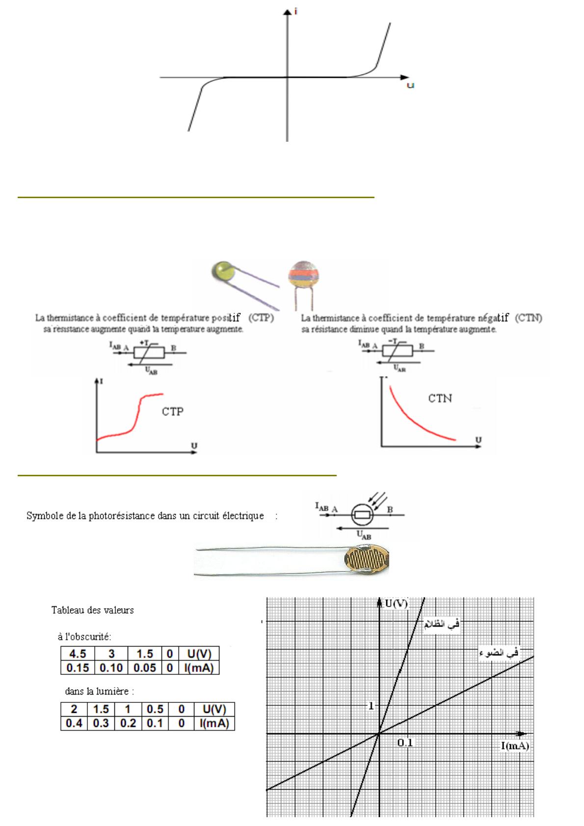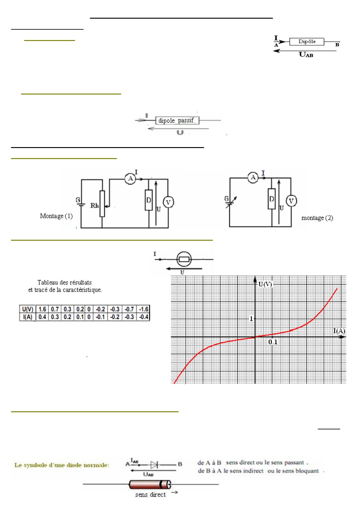 II Caractéristiques de quelques dipôles passifs