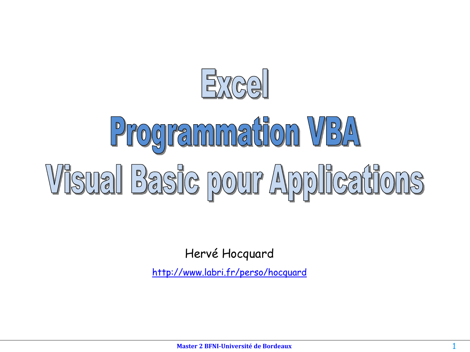 Programmation sous Excel via VBA (Visual Basic pour Applications)