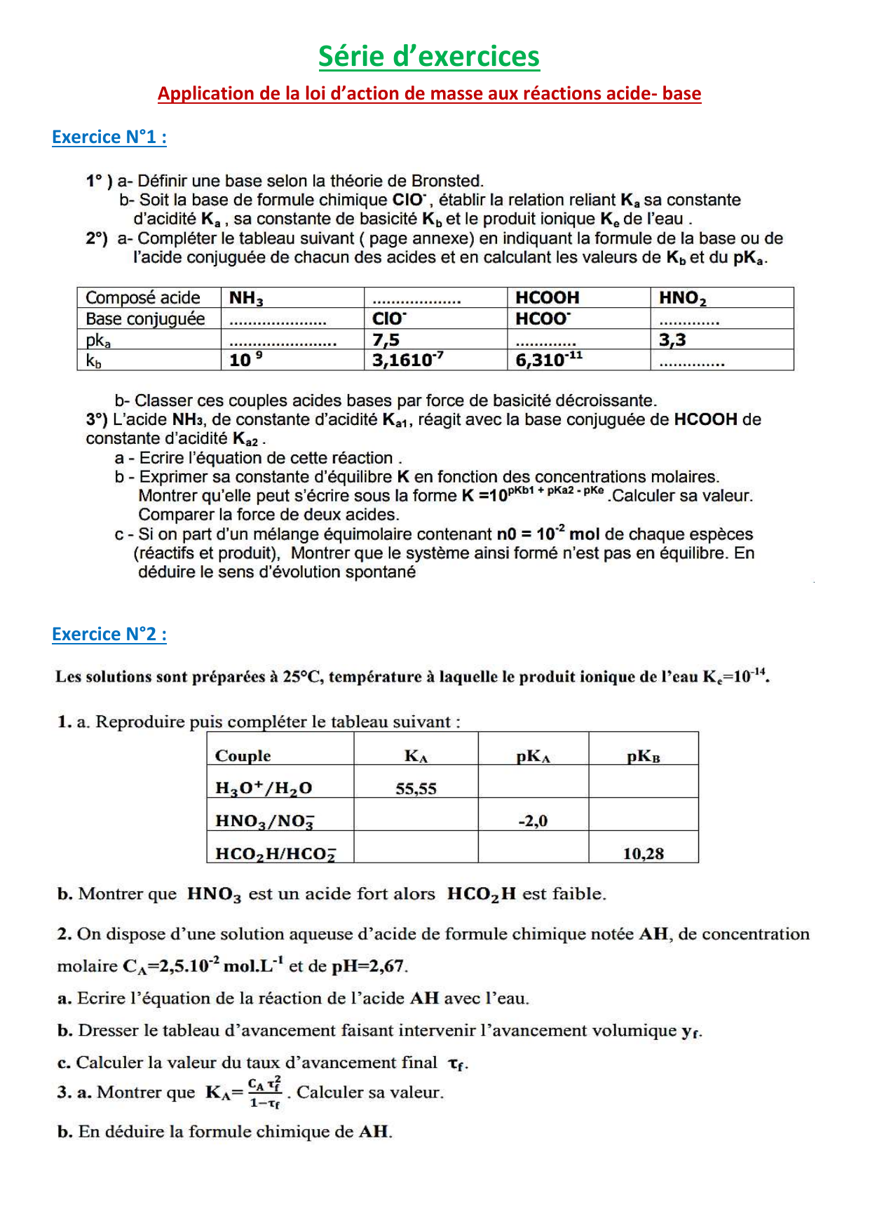 Réactions Acide-Base : Exercices Loi d'Action de Masse