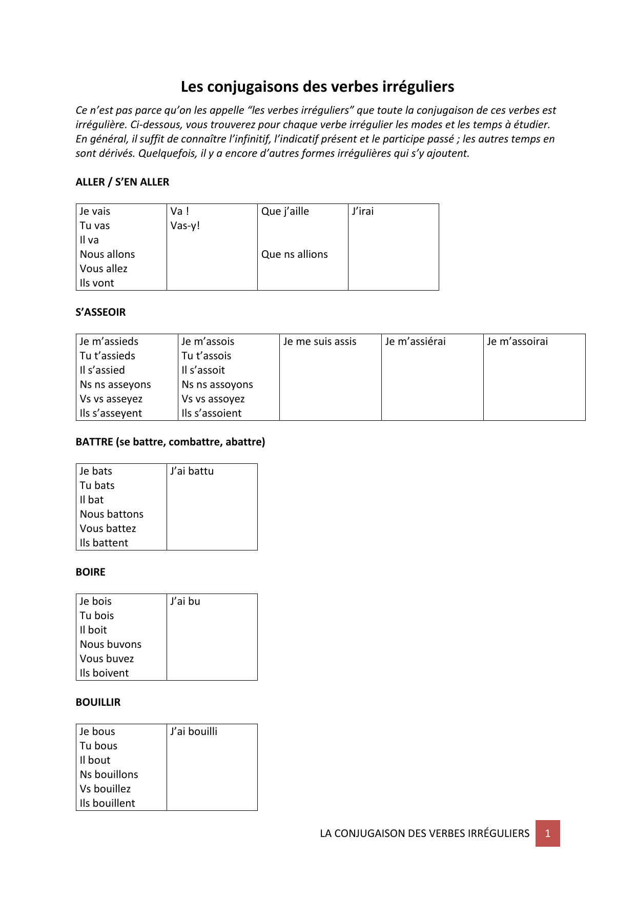 irrégulière. Ci-dessous, vous trouverez pour chaque verbe irrégulier les modes et les temps à étudier.