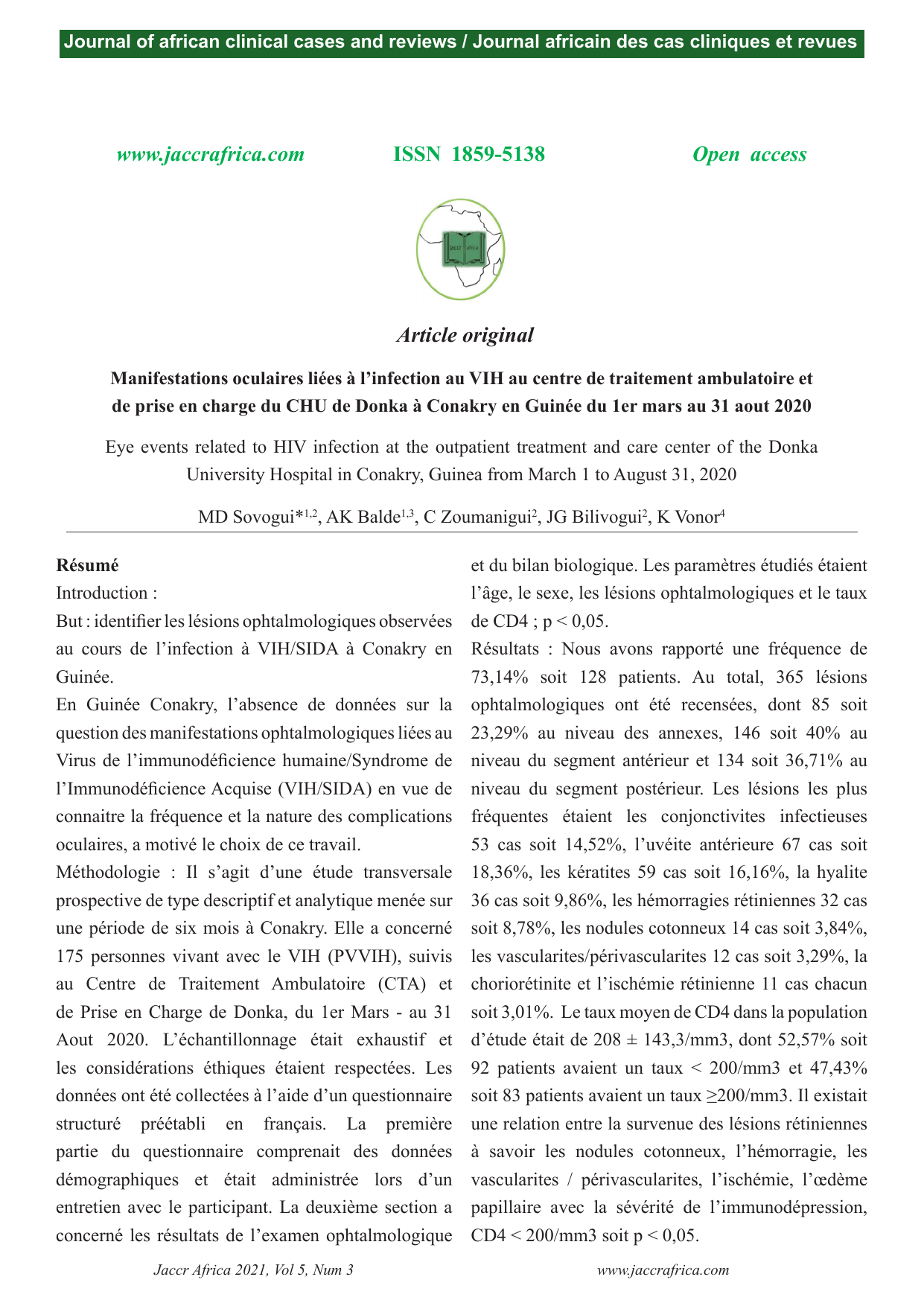 MD Sovogui et al. Jaccr Africa 2021; 5(3): 208-215