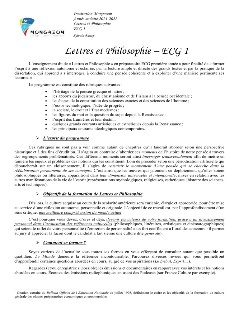 Sylvain RAUZY, Professeur de Philosophie en charge de l’enseignement de Lettres et Philosophie