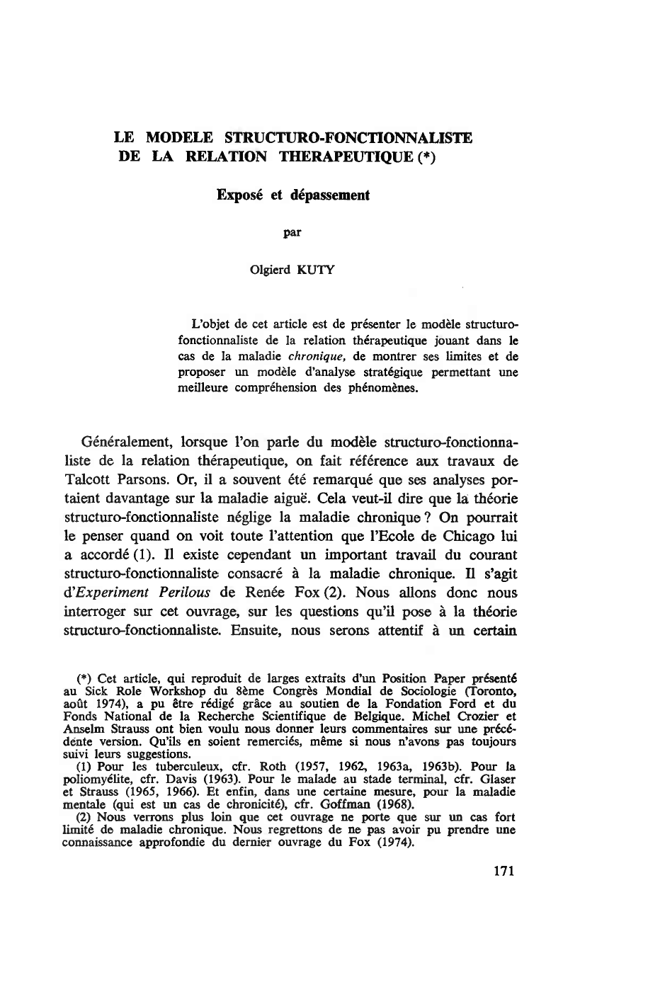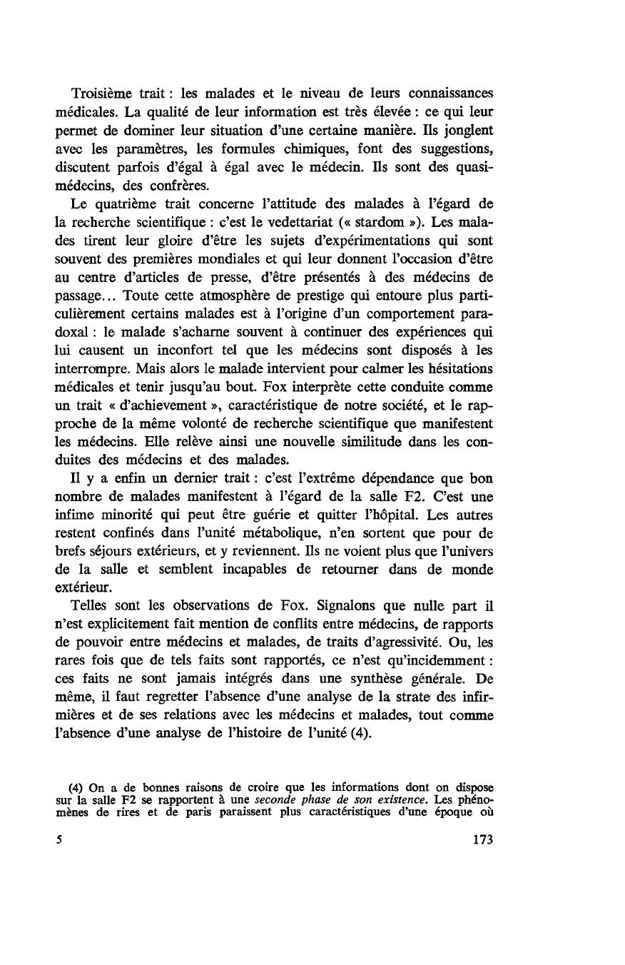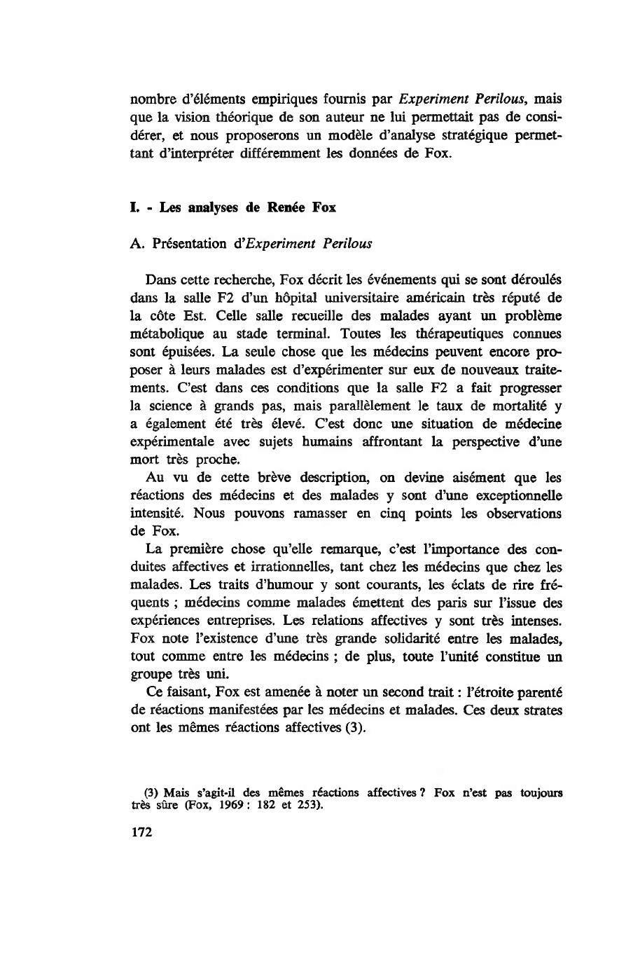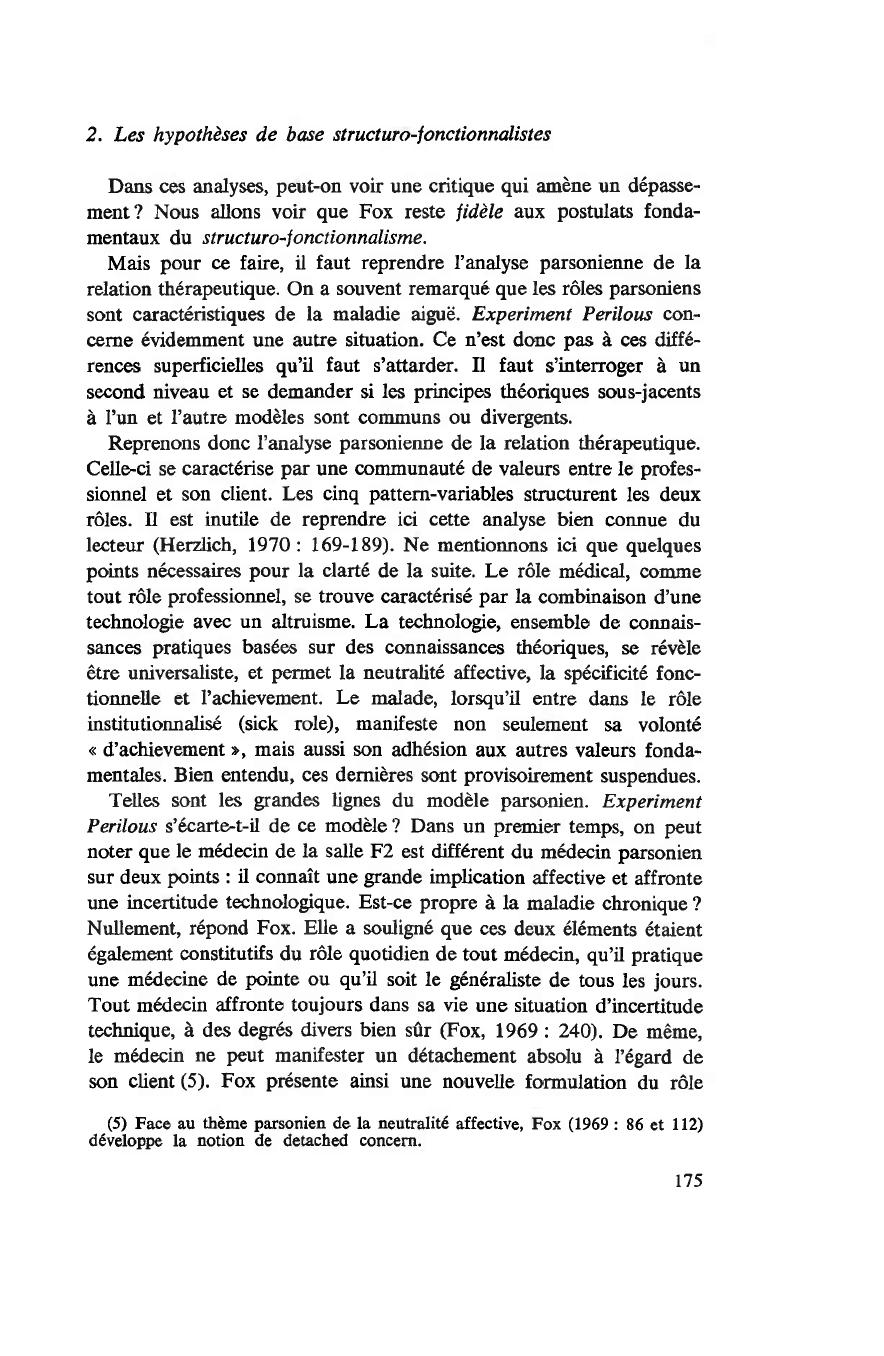 (5) Face au thème parsonien de la neutralité affective, Fox (1969: 86 et 112)