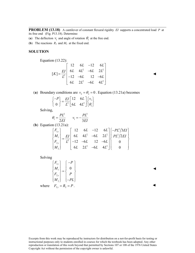 PROBLEM (13.18) A cantilever of constant flexural rigidity EI supports a concentrated load P at