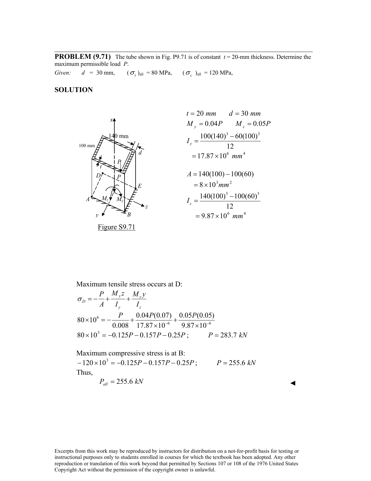 PROBLEM (9.71) The tube shown in Fig. P9.71 is of constant t = 20-mm thickness. Determine the