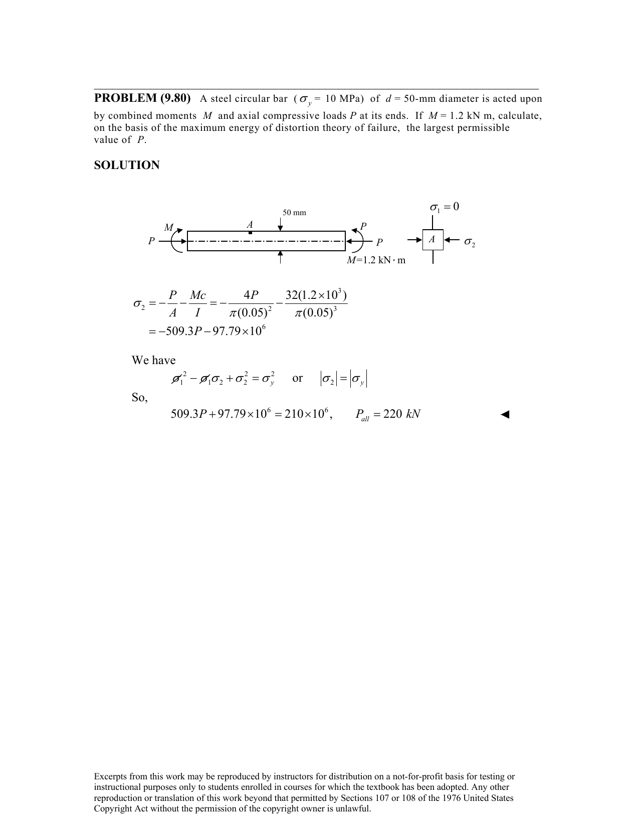 by combined moments M and axial compressive loads P at its ends. If M = 1.2 kN m, calculate,