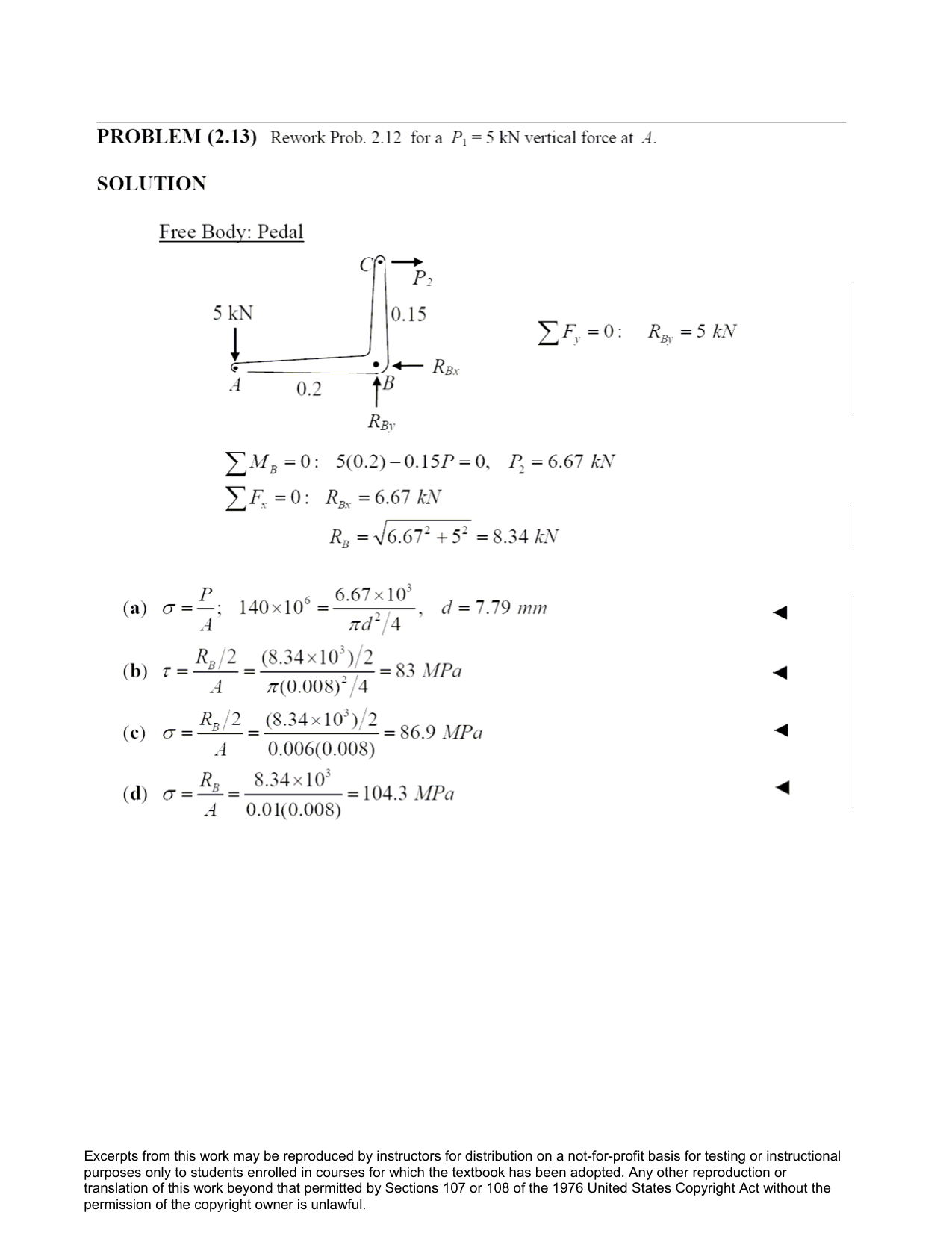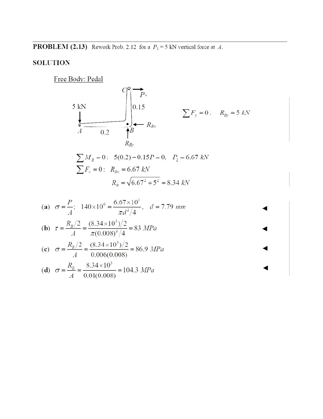 Pedal Statics Problem Solution: Force & Stress Analysis