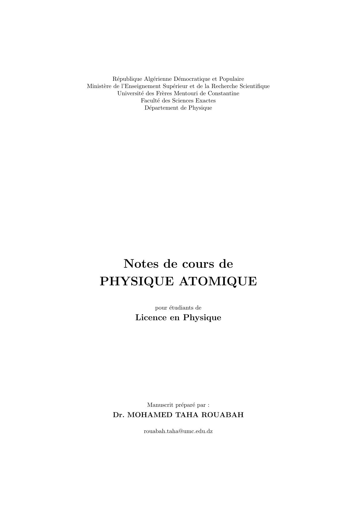 vis-`a-vis du module “Physique Atomique” et leurs donne un grand engouement
