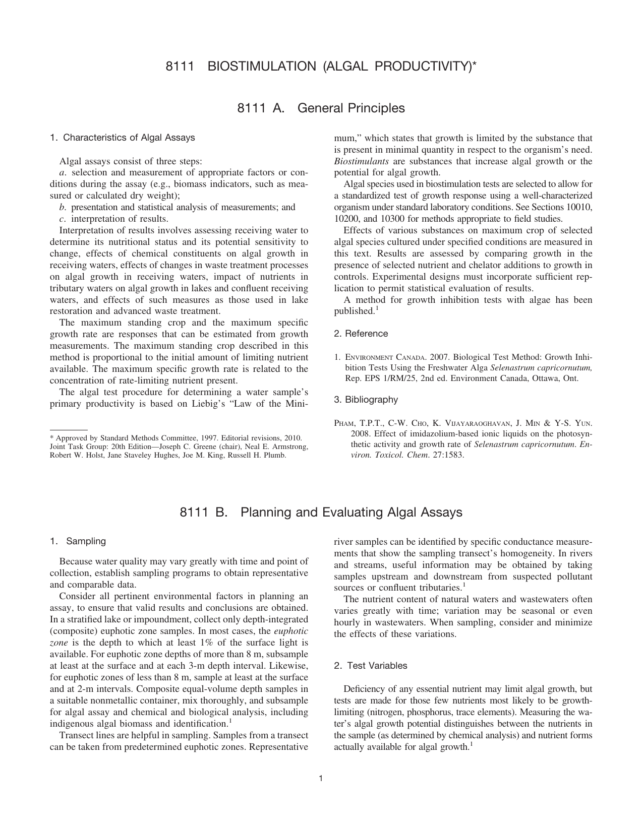 1. MILLER, W.E., J.C. GREENE &T.SHIROYAMA. 1978. The Selenastrum