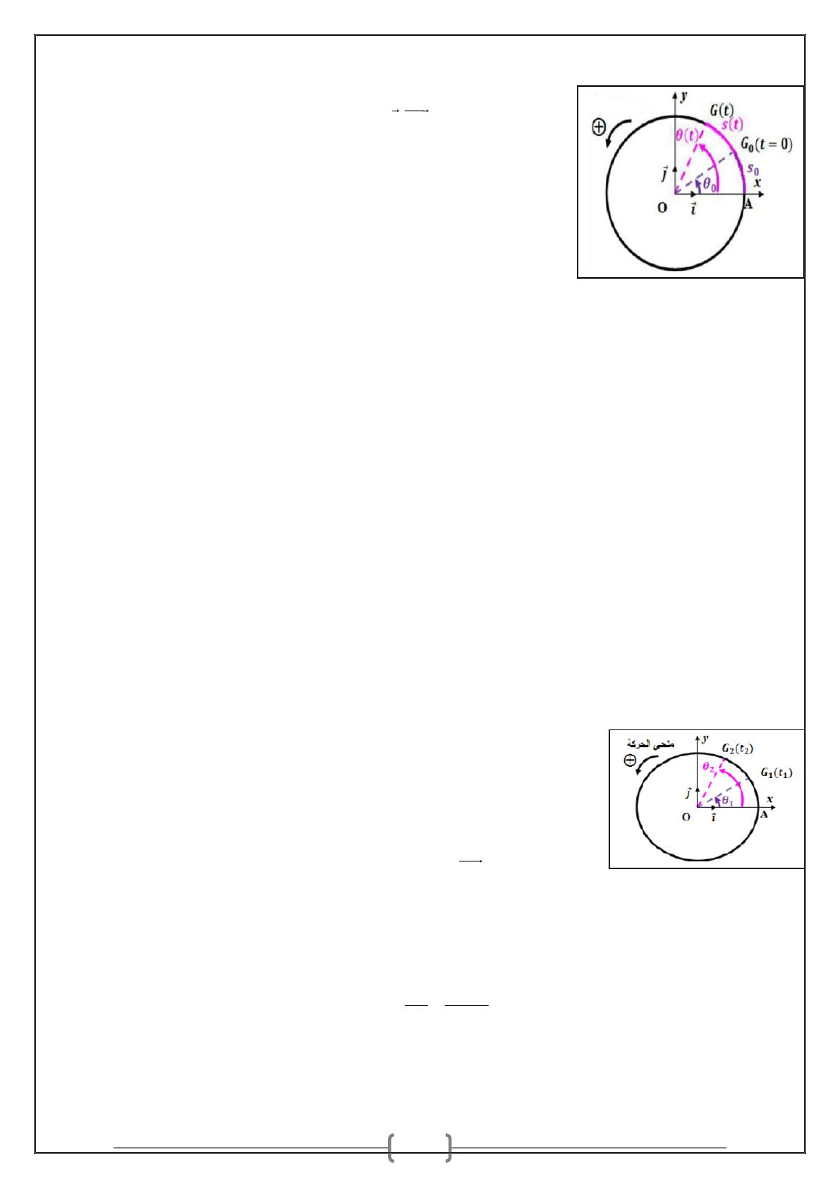 Nous pouvons repérer la position du point G à chaque instant en utilisant l’abscisse angulaire