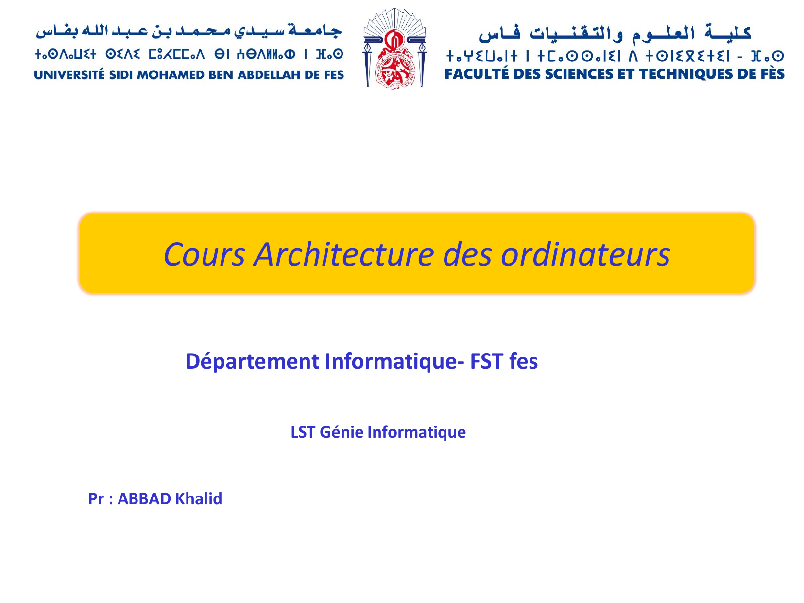Cours d'architecture des ordinateurs - Université Fès