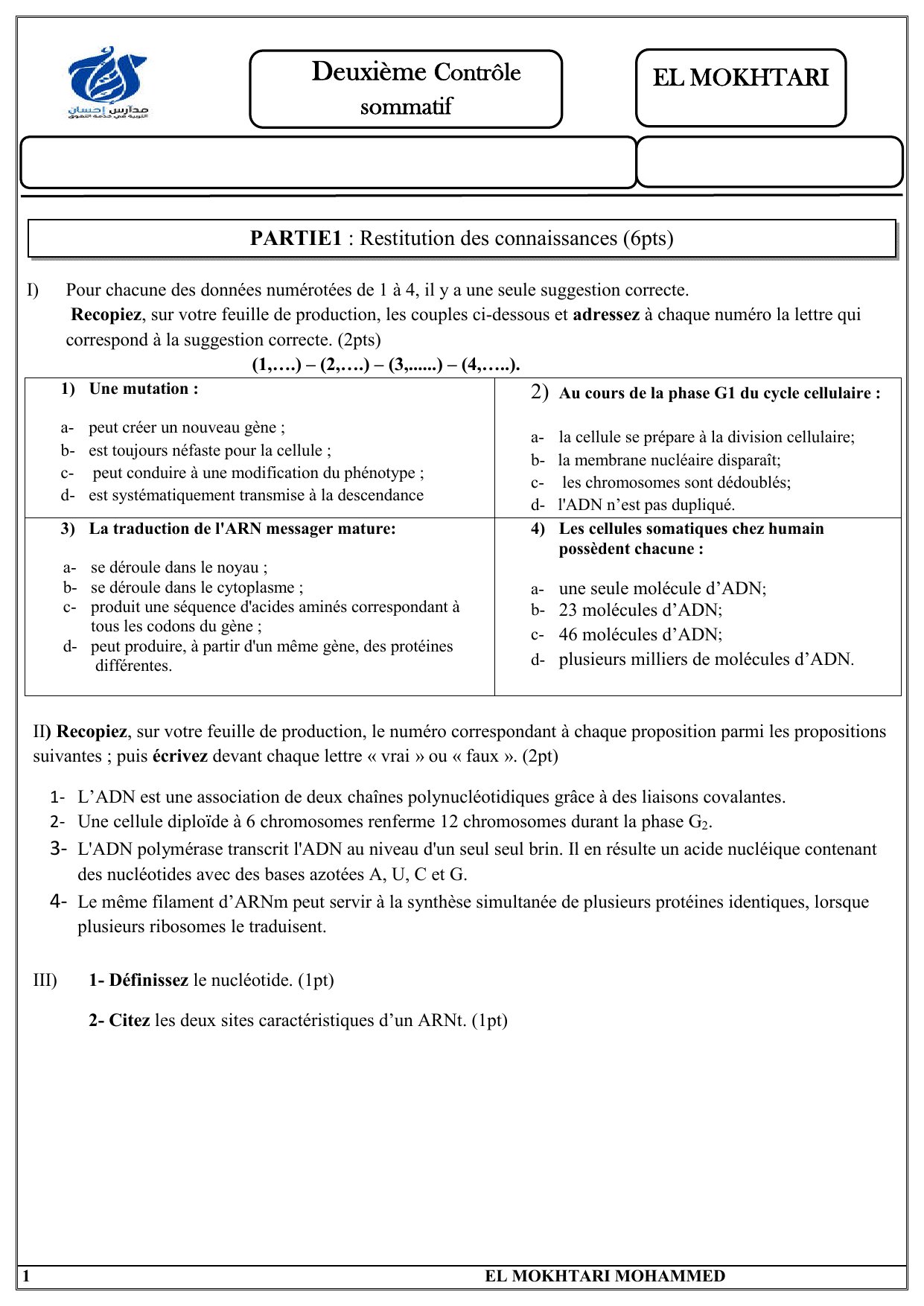 I) dont la longueur d'ADN déroulé est égale à 8 cm. (On donne : distance entre deux paires de