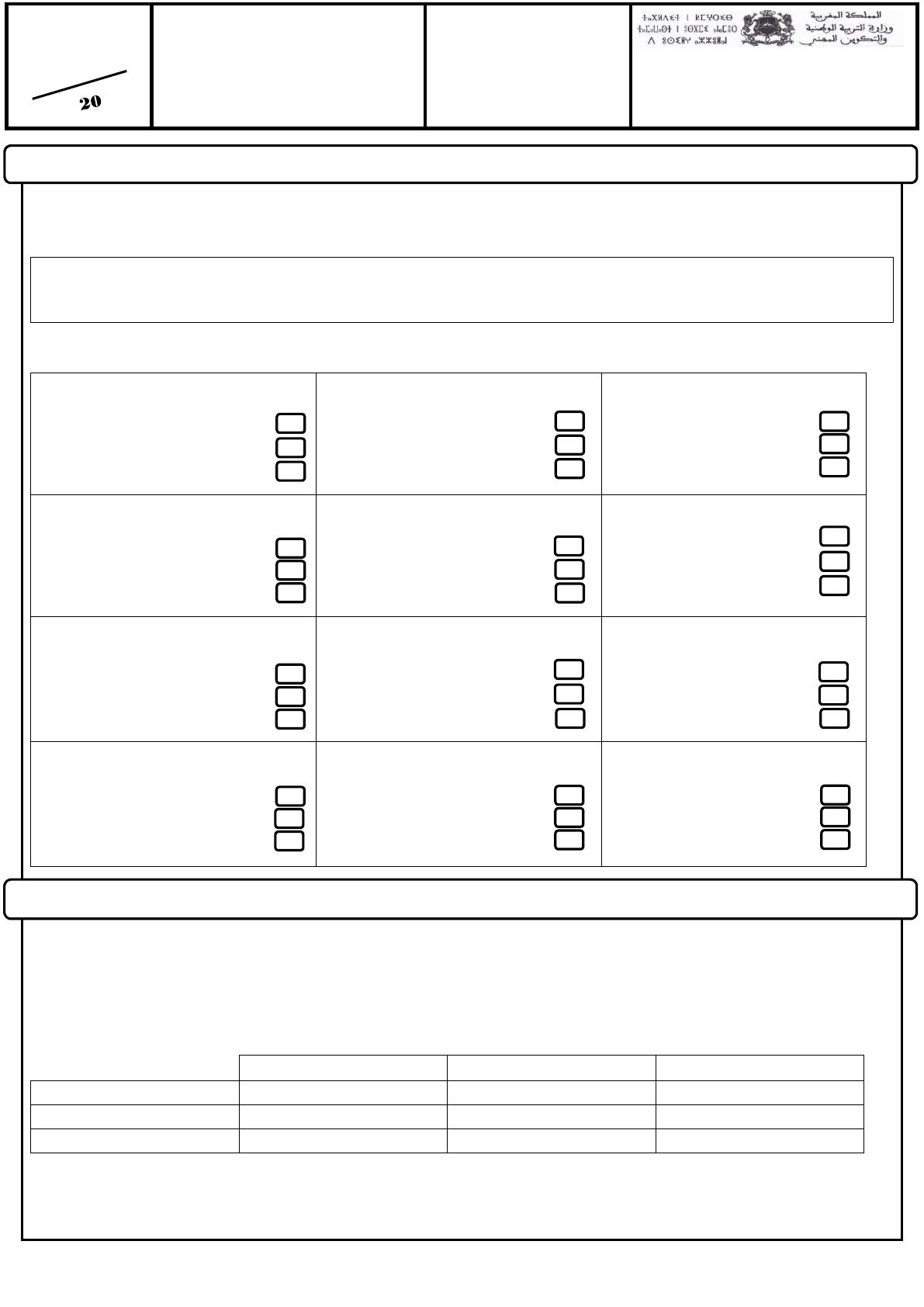 EXERCICE2 : Coucher (X) la bonne réponse (6pts)