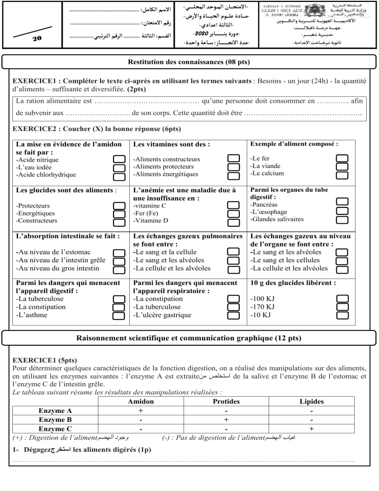 1- Dégagezجﺮﺨﺘﺳا les aliments digérés (1p)