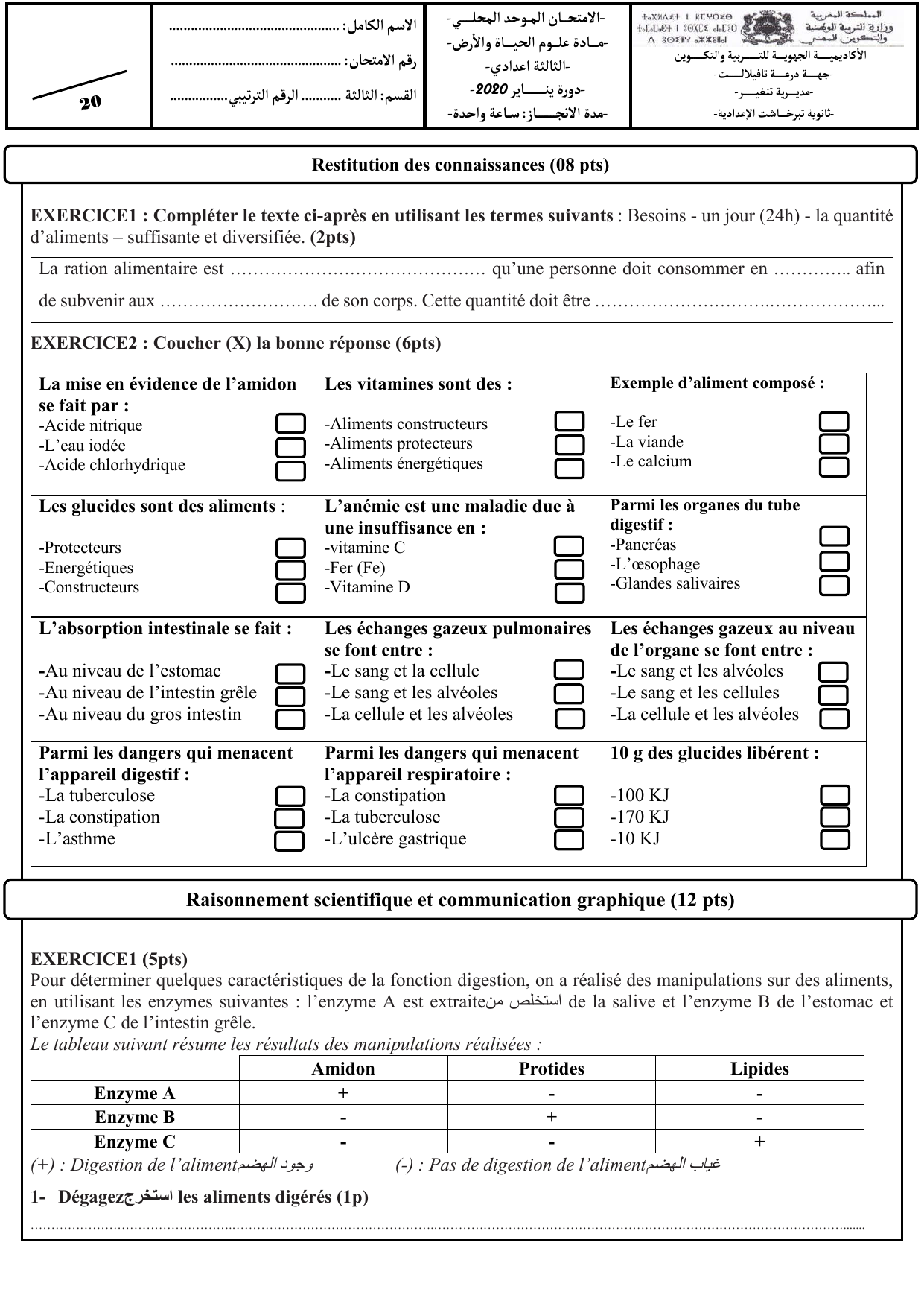 Raisonnement scientifique et communication graphique (12 pts)