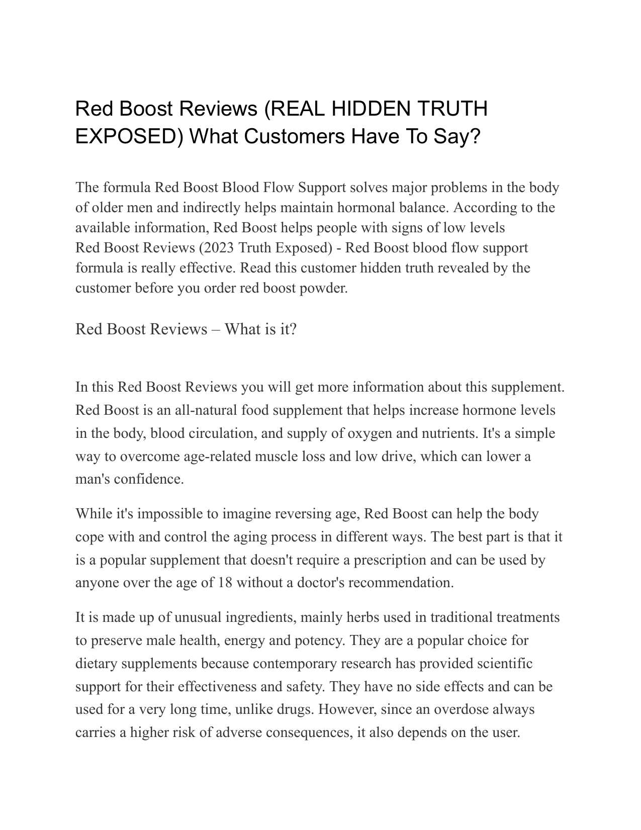 The family of Red Boost ingredients is nettle root extract, a male hormone