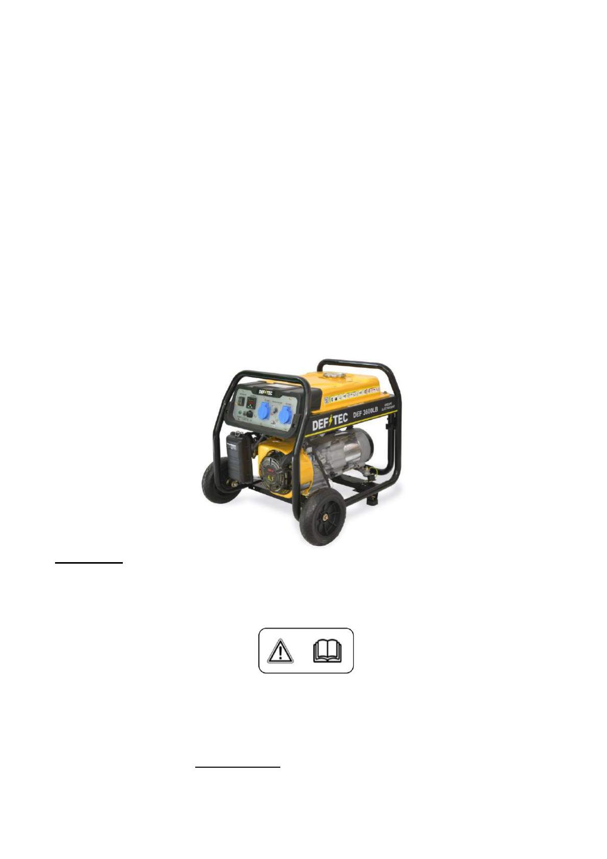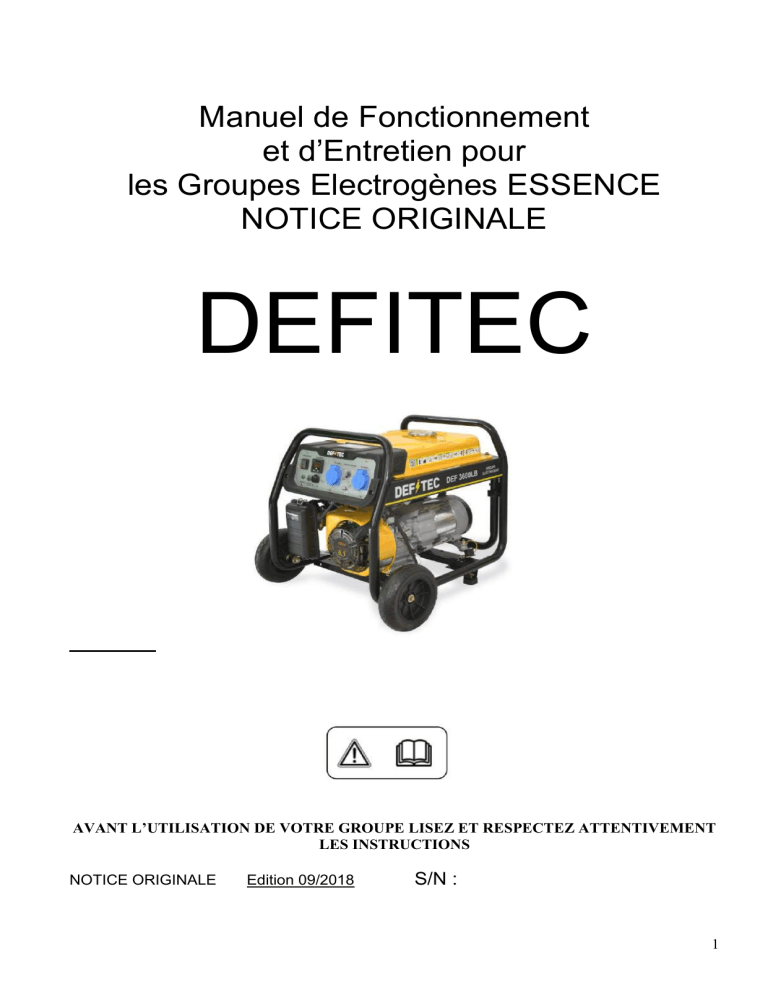Nous vous remercions d’avoir choisi un Groupe Electrogène DEFITEC